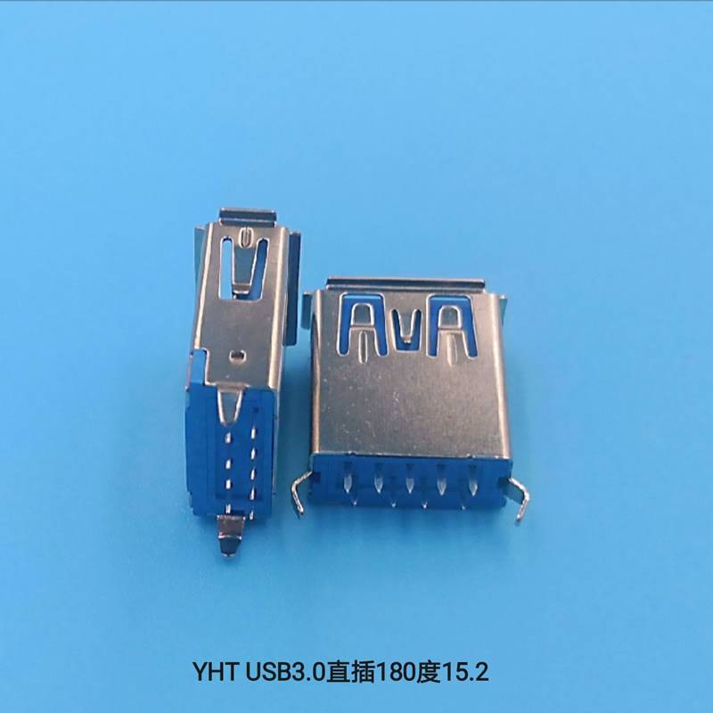厂家直销USB3.0弯脚直插180度15.2 USB母座充电接口插头插座
