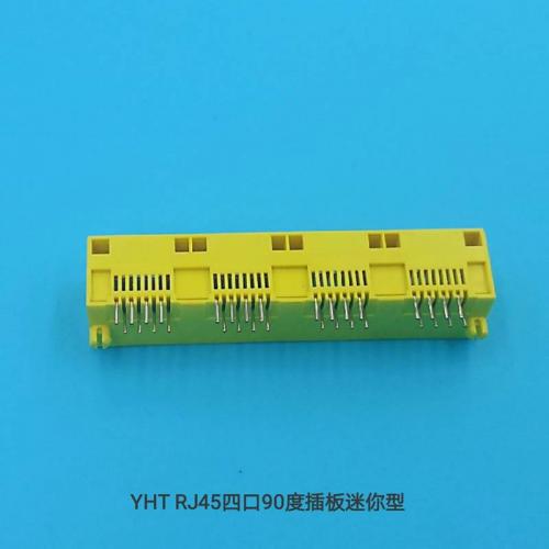 厂家直销网络插座RJ45四口90度插板迷你型网络接口光纤插头