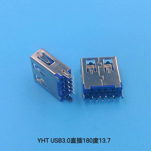 厂家直销USB3.0AF直插13.7USB母座连接器充电接口USB插头插座
