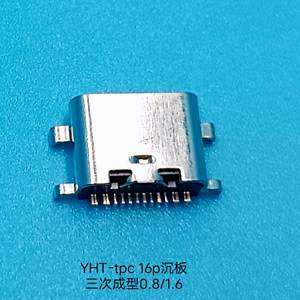 TYPE-C16P母座沉板0.8/1.6三次成型带钢片连接器快速充电接口