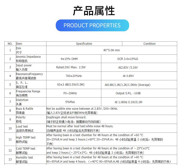 动奇扬声器BOX20*40 4欧3瓦投影仪广告机医疗平板广告充电桩音腔喇叭