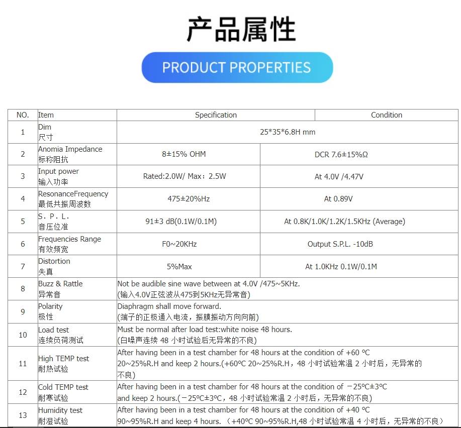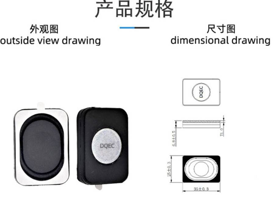 动奇35*25复合膜腔体喇叭人脸识别,收款机,点读笔,8欧2瓦安防监控喇叭