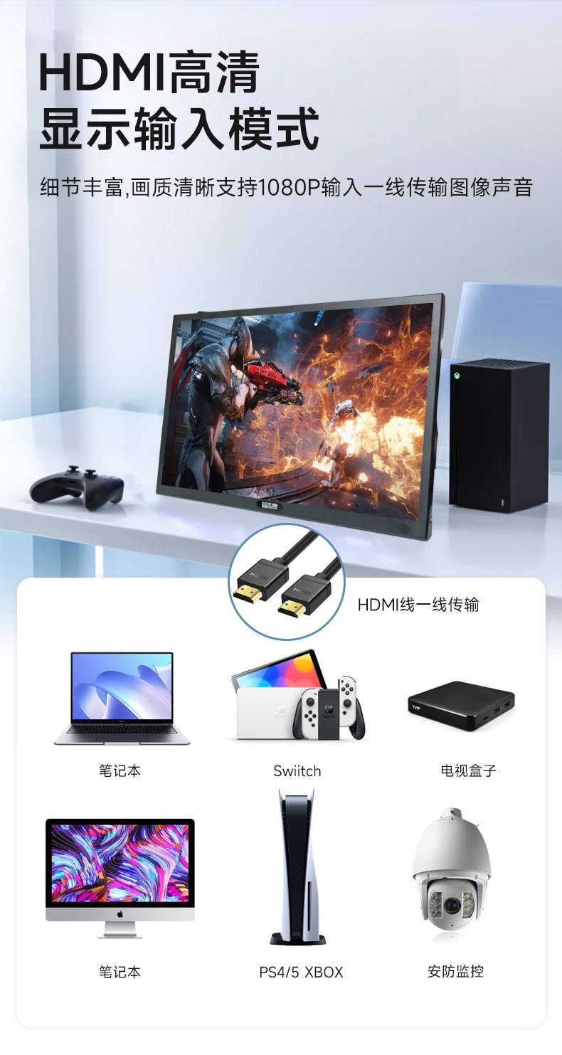 无线便携显示器投屏手机笔记本车载usb播放器直播ps45switch屏幕