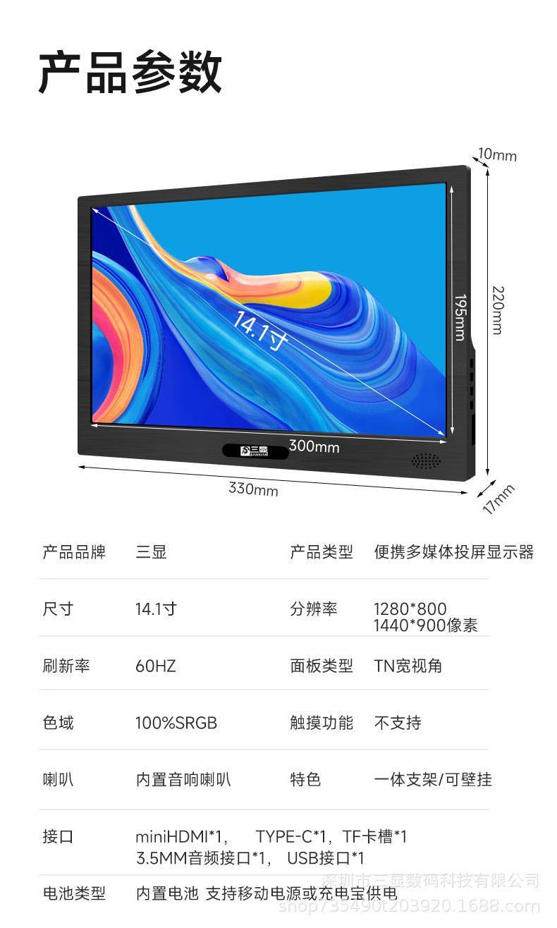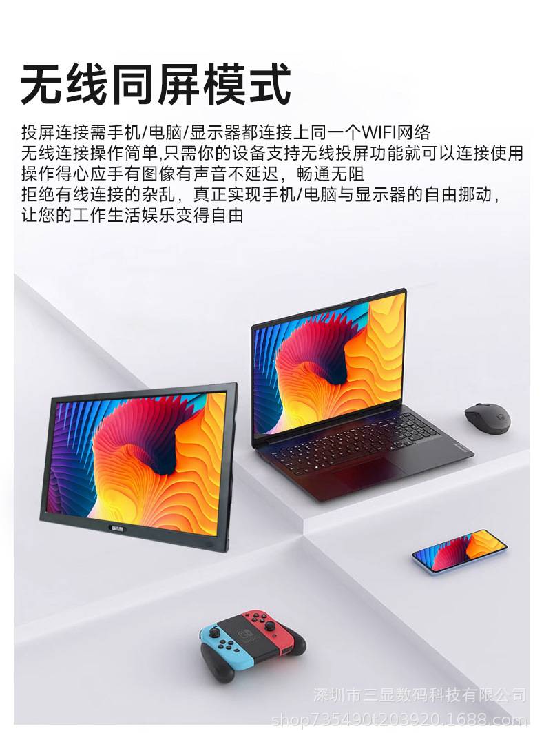 手机笔记本电脑无线投屏便携式显示器扩展外接switchps5充电工厂