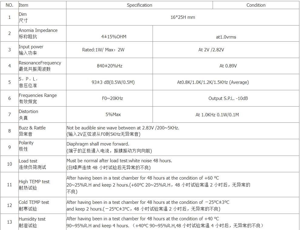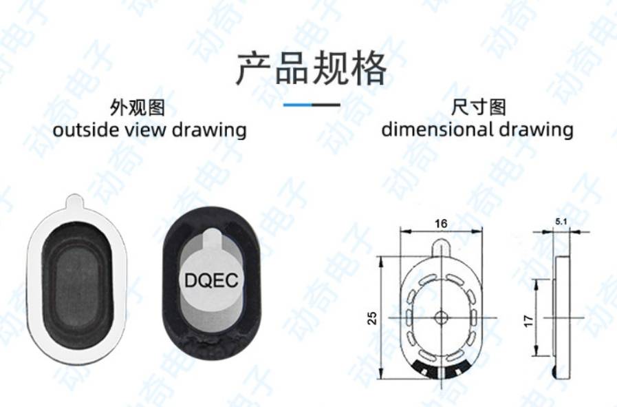 动奇喇叭 16*25MM 4欧2W内磁跑道形,广泛用于,笔电,行车记录仪,执法仪,照相机等专用喇叭