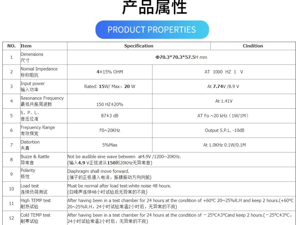 动奇扬声器70*70复合PP盆高品质蓝牙音箱家用木箱专用4Ω15W喇叭