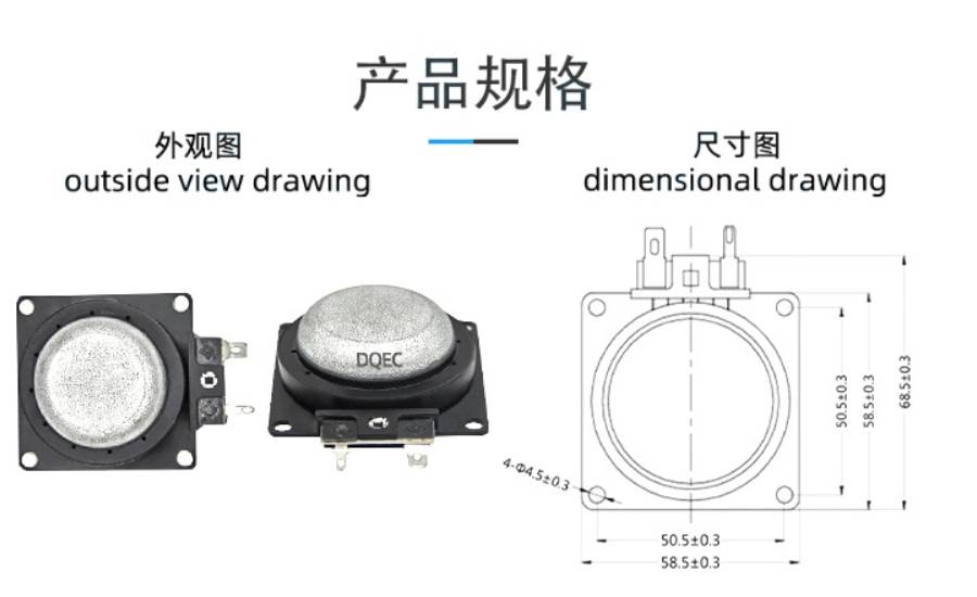 动奇扬声器52mm方形留声机早教机高品质音箱4Ω8W大功率内磁喇叭