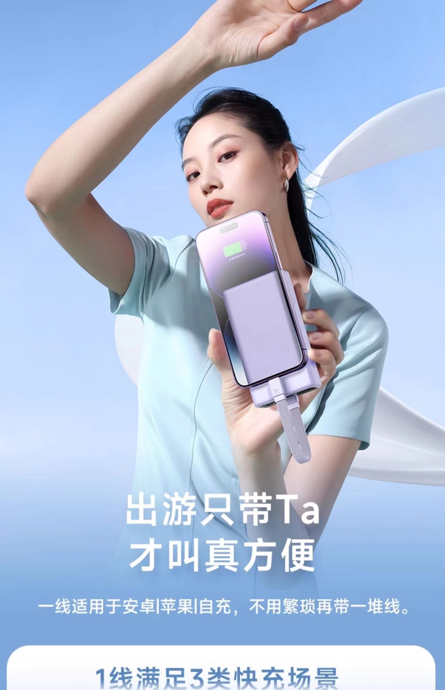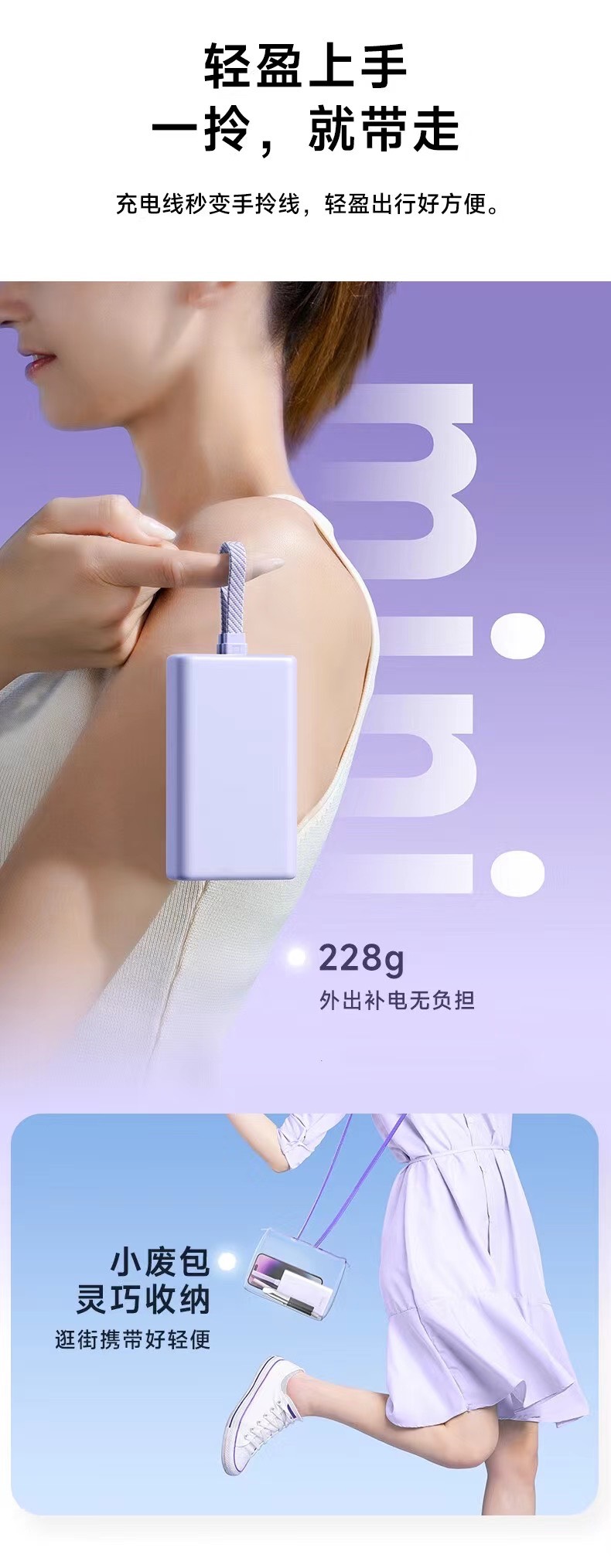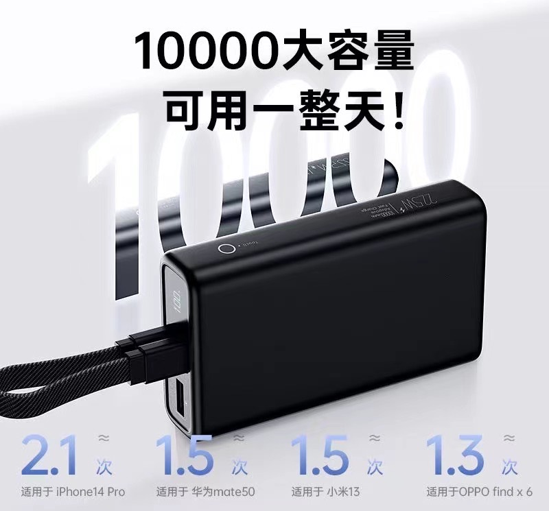 新款22.5w自带快充线20000毫安充电宝,移动电源套料