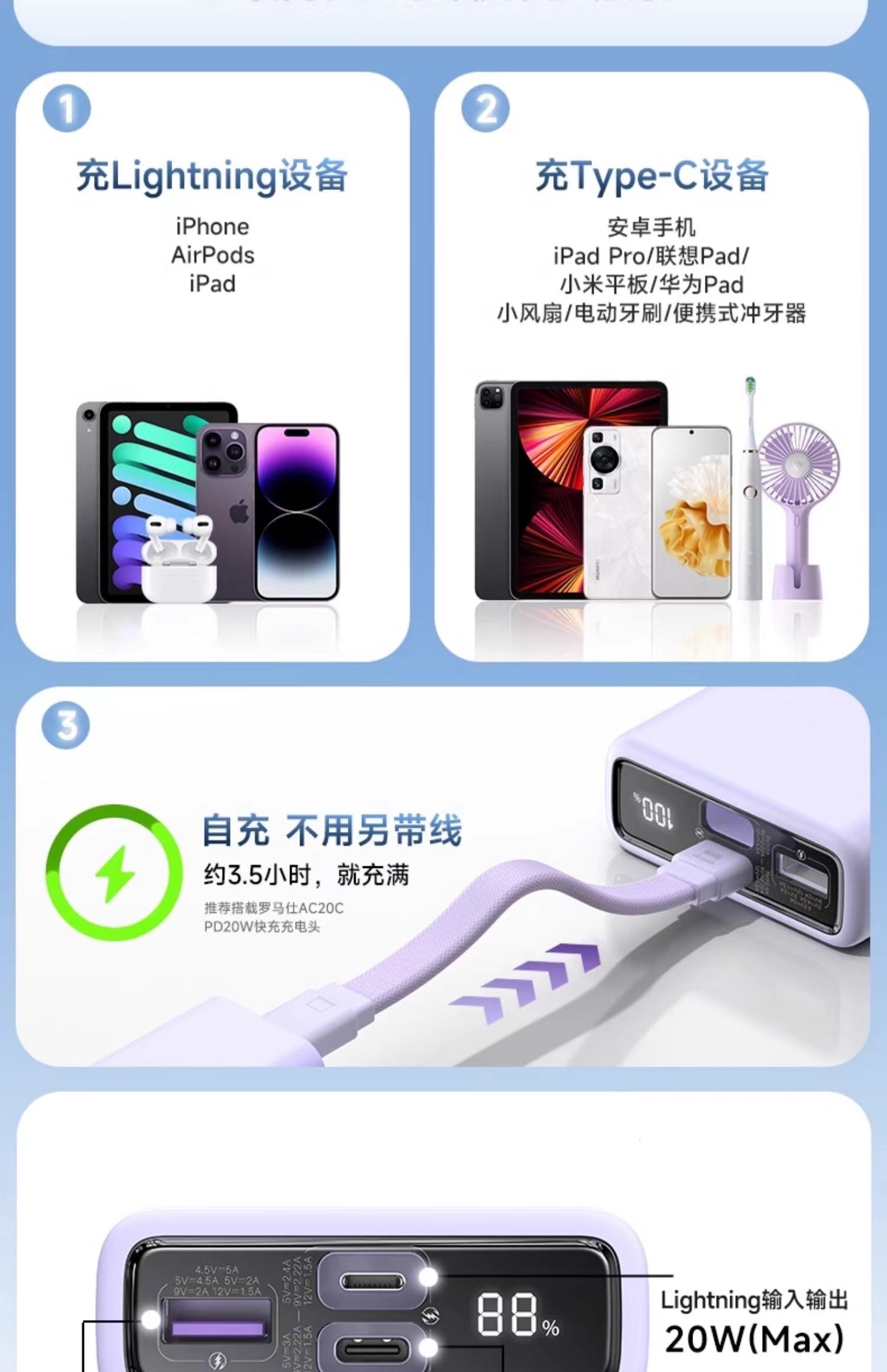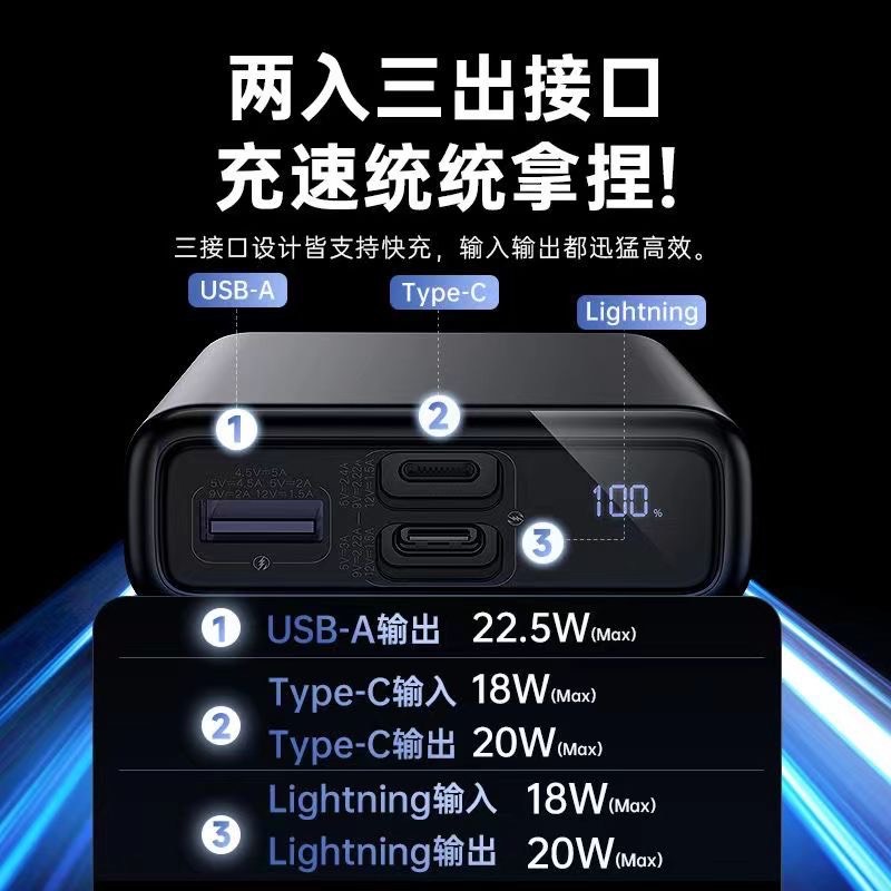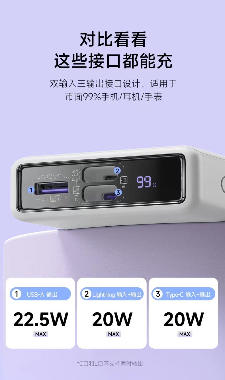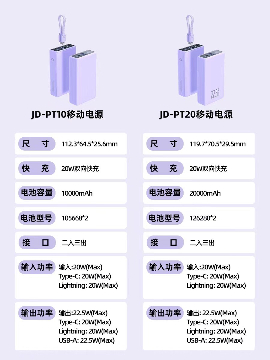 新款22.5w自带快充线20000毫安充电宝,移动电源套料