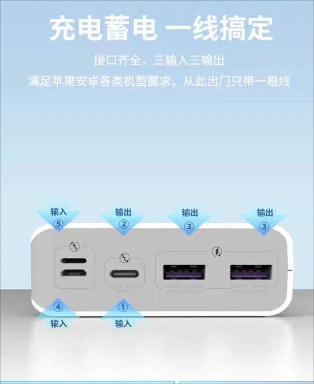 新款22.5w自带快充线20000毫安充电宝,移动电源套料