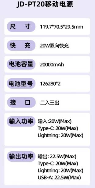 新款22.5w自带快充线20000毫安充电宝,移动电源套料