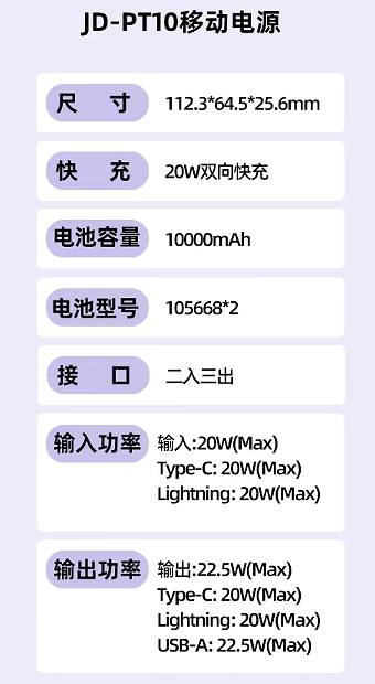 新款22.5w自带快充线20000毫安充电宝,移动电源套料