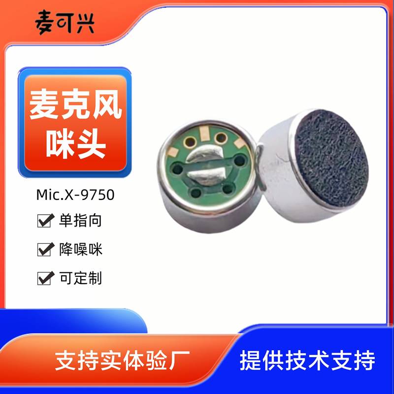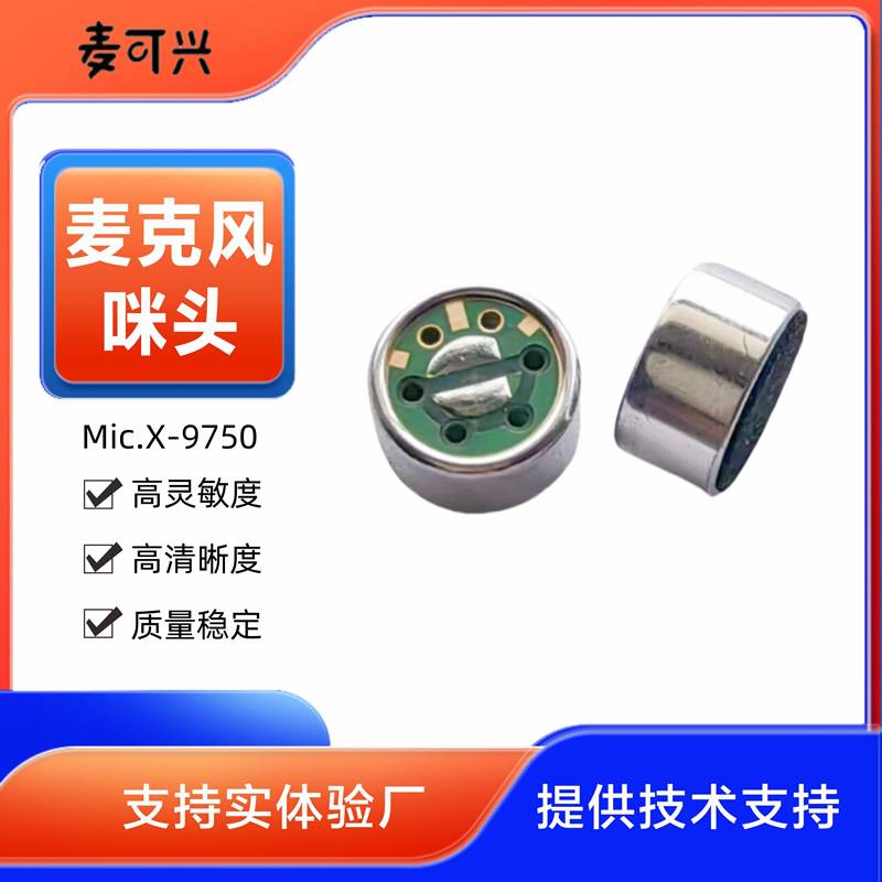 供应高灵敏度传声器心型咪扩音器用单指向麦克风mic9750降噪咪头