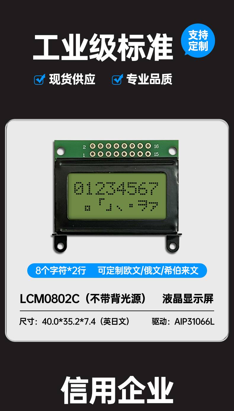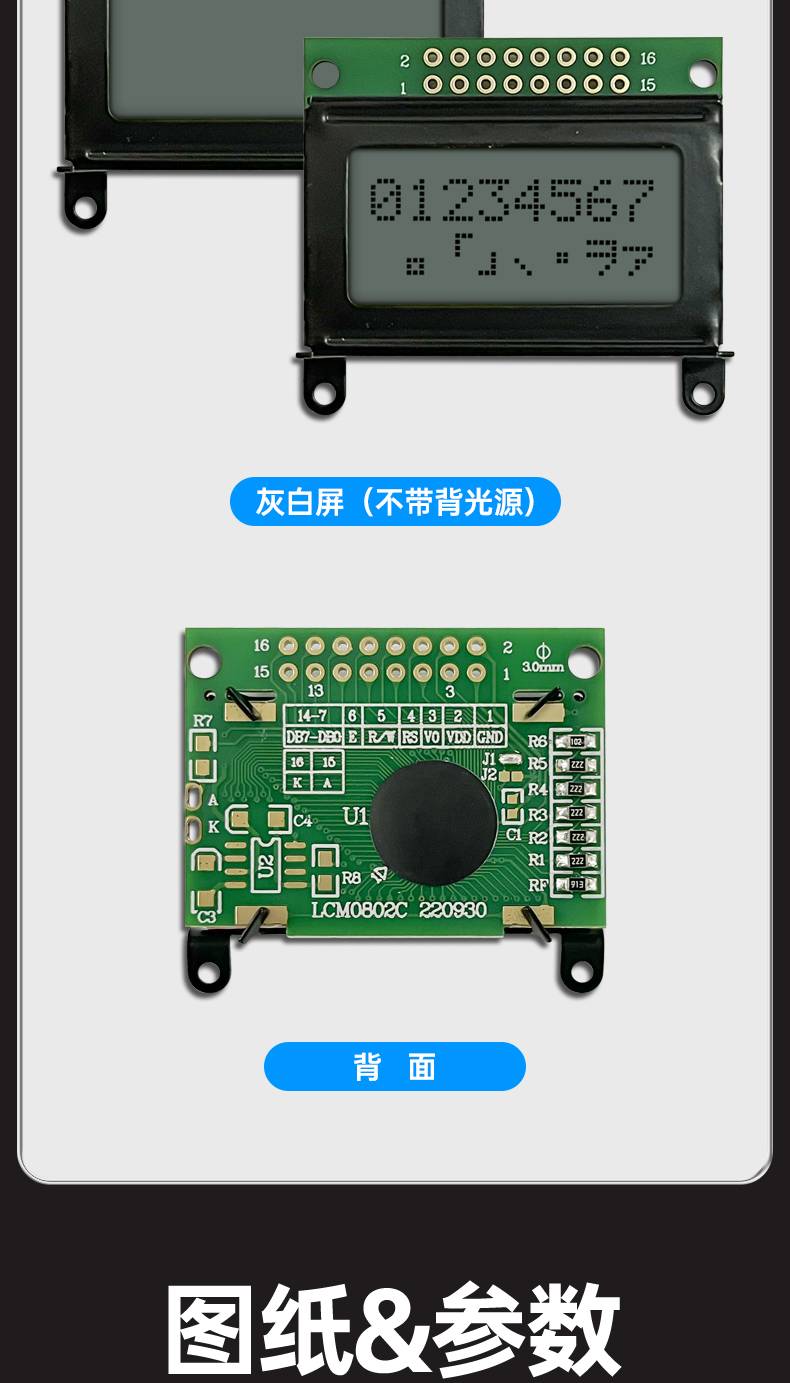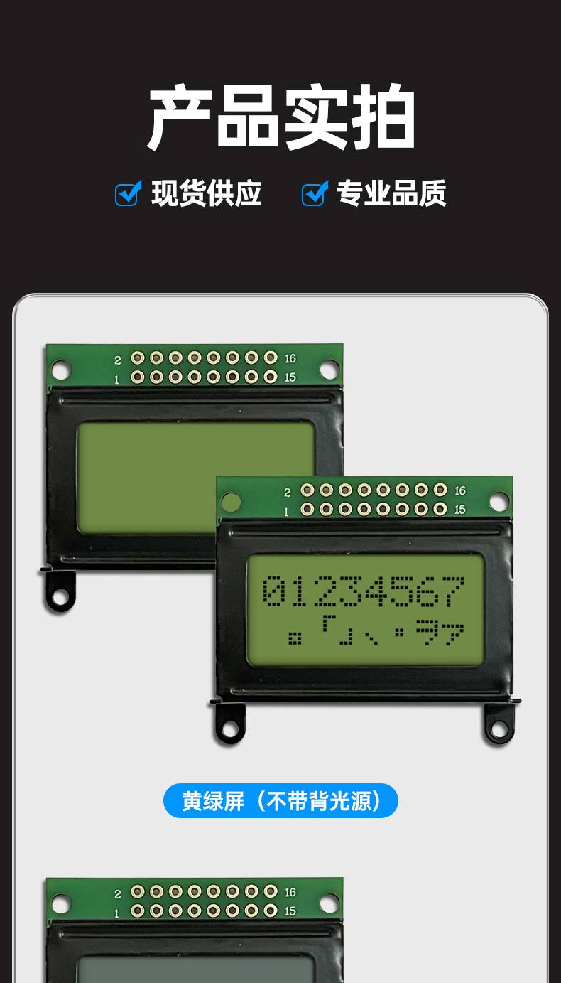 字符点阵LCM0802C液晶屏模块LCD液晶黄绿屏灰屏无背光超薄3.3V5V