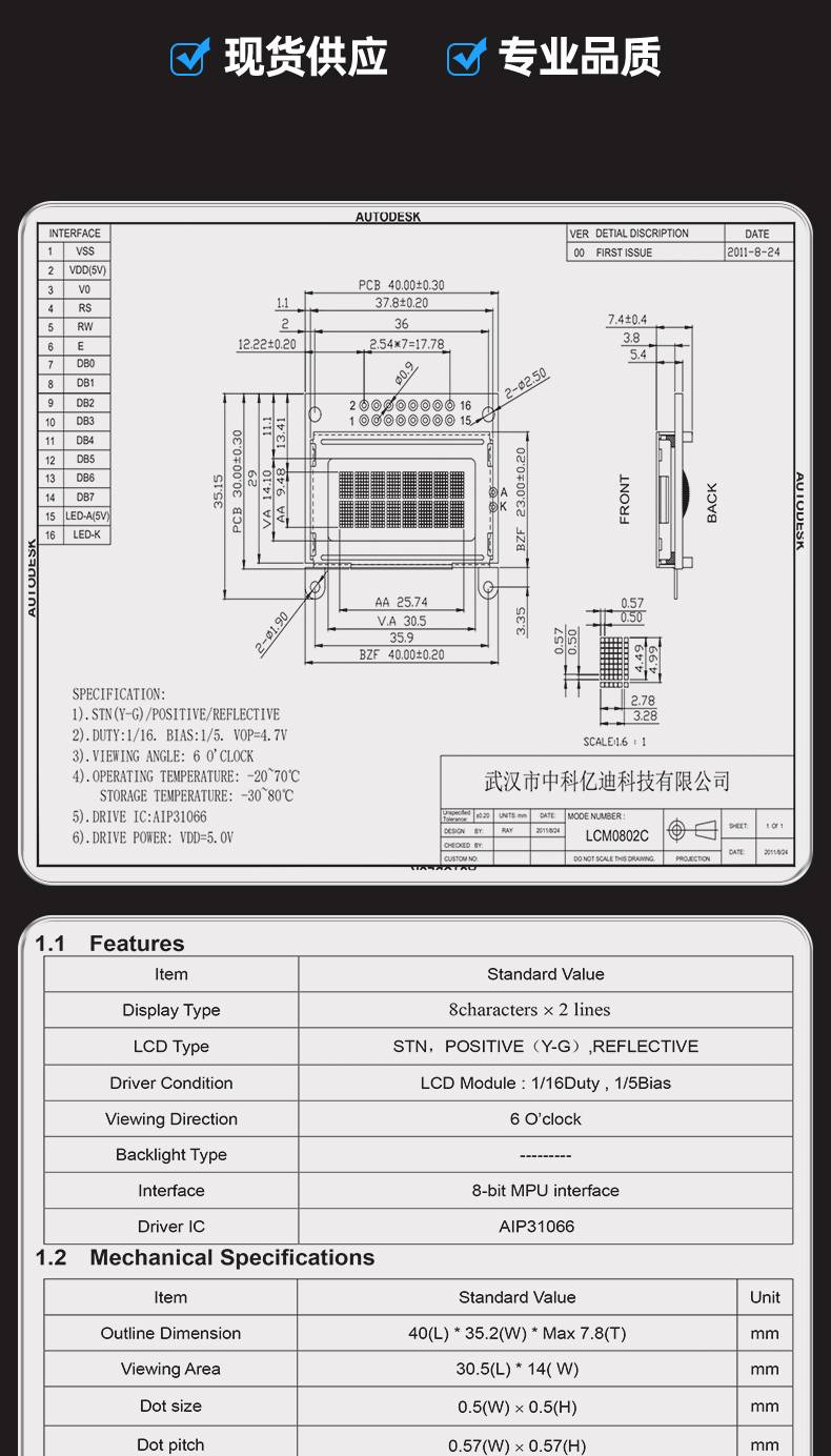 字符点阵LCM2002F液晶屏模块20*2点阵LCD液晶屏1602相同尺寸