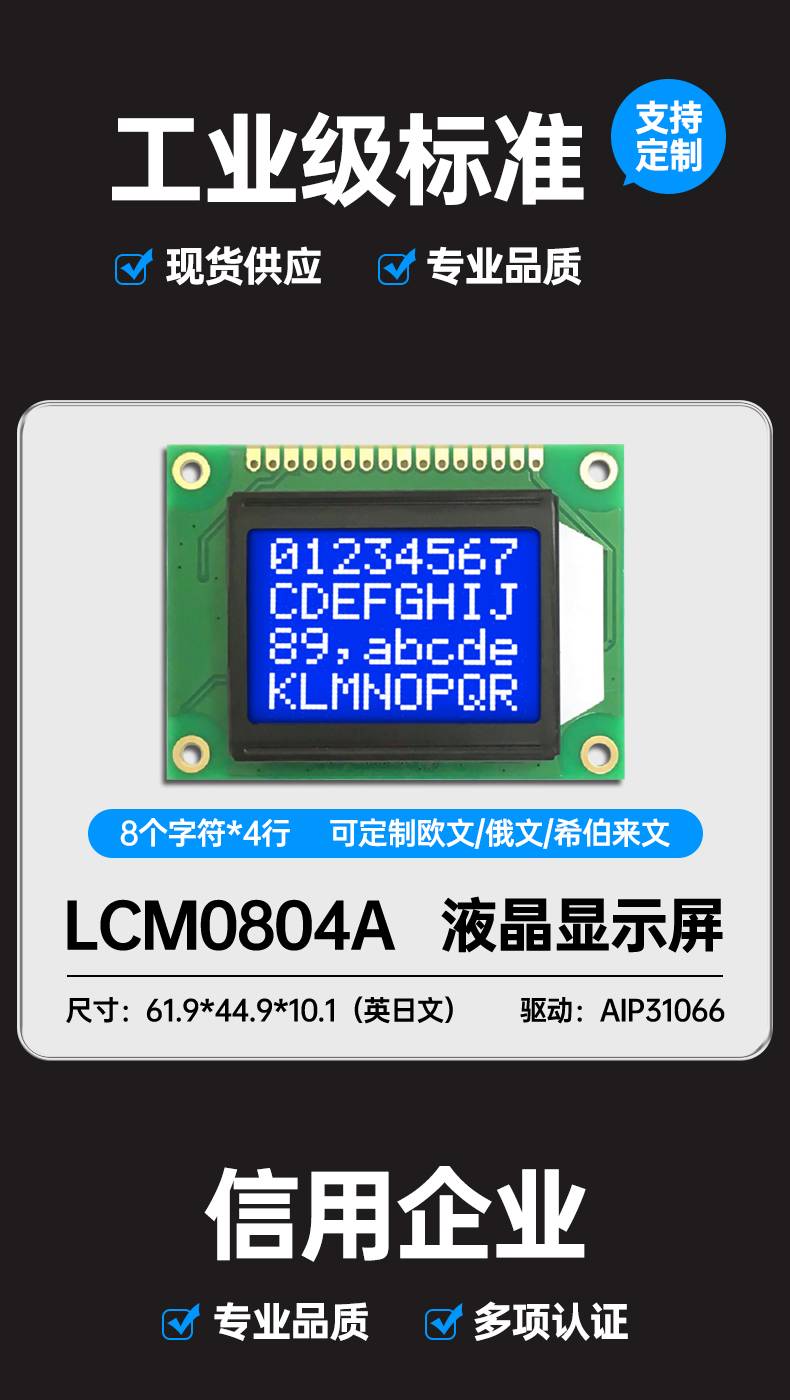 字符点阵LCM0804A液晶屏模块8个字符*4行英日文LCD蓝屏8*4
