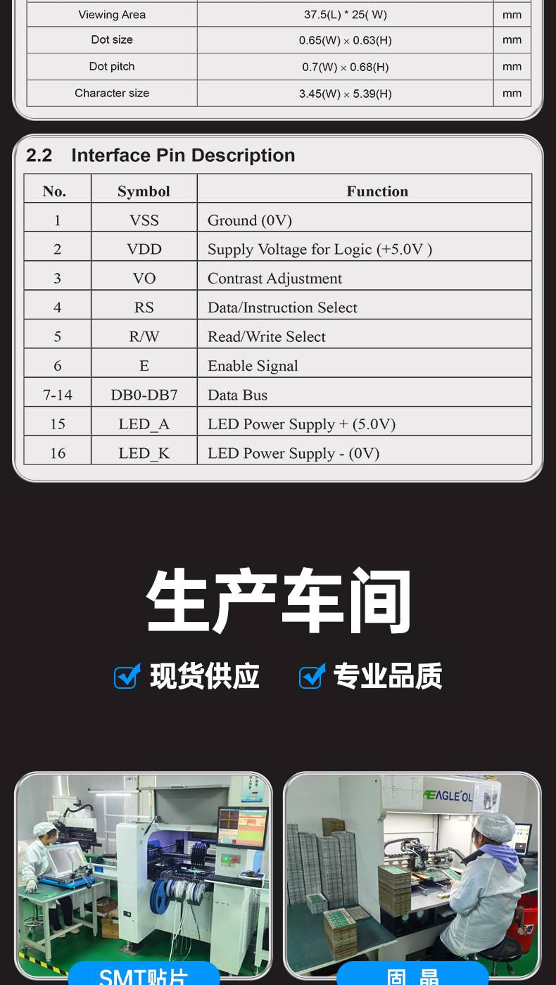 字符点阵LCM2002A液晶屏20*2液晶模块LCM模组蓝屏黄绿屏灰屏工厂