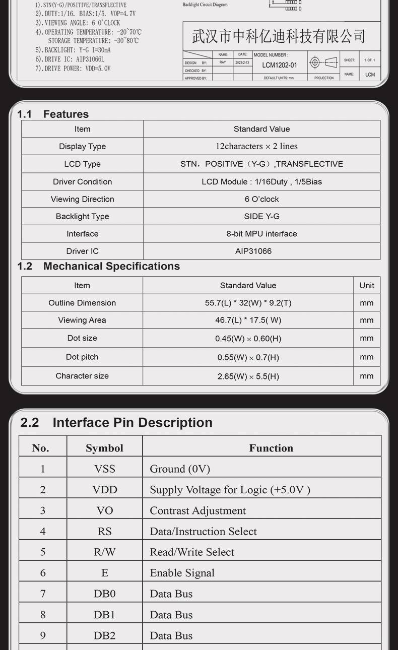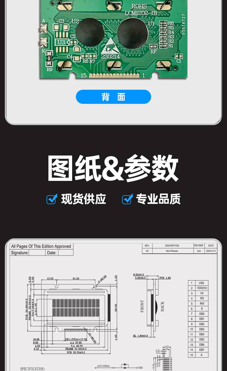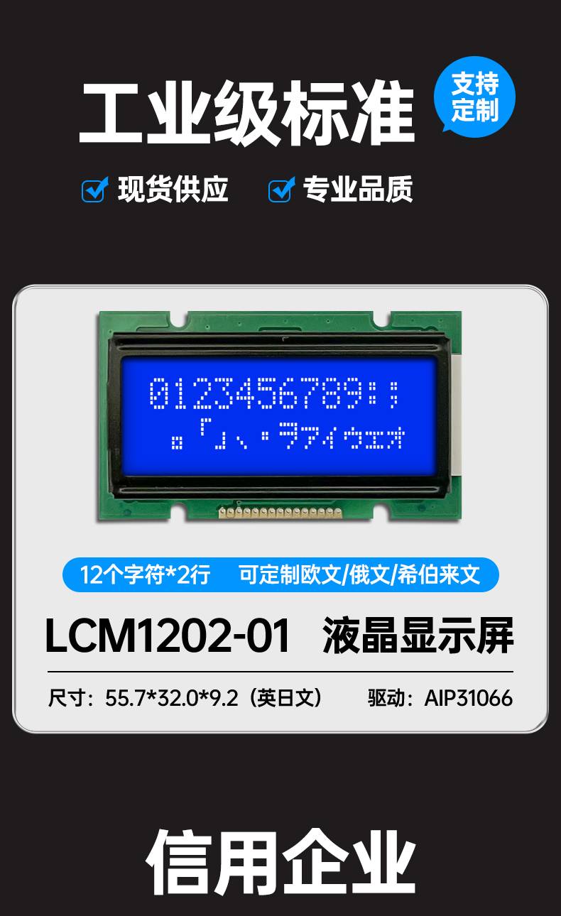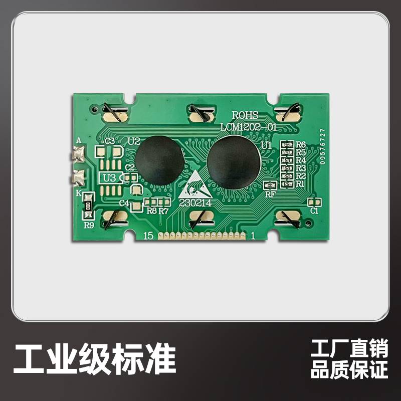 字符点阵LCM1202-01液晶屏模块12个字符*2行蓝屏黄绿屏灰屏3.3V5V