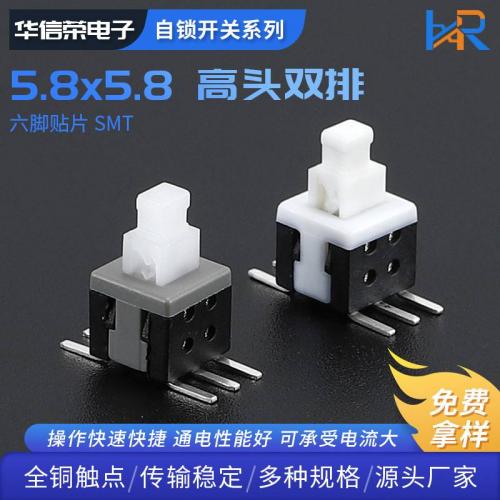 按钮开关自锁无锁按键开关 5.8x5.8平头六脚贴片SMD耐温轻触开关