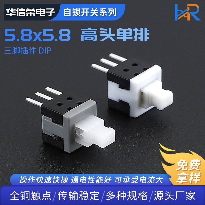 自锁开关5.8x5.8高头单排三脚插件DIP复位小型无锁电源按键开关