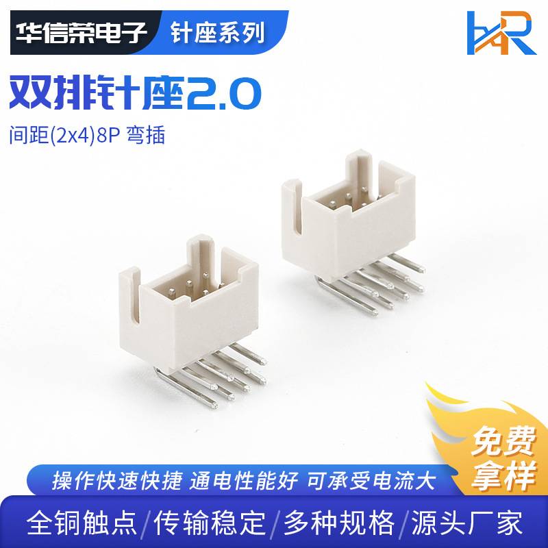 PH 2.0mm间距 双排弯针DIP 耐高温接插件连接器针座系列