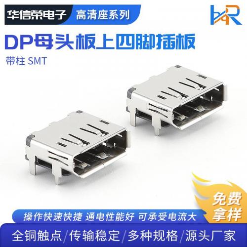 DP母座 高清插座接口20P带柱耐高温SMT连接器母头板上四脚插板
