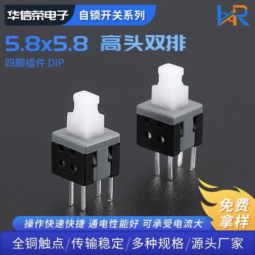 供应自锁开关5.8x5.8按键开关高头双排四脚插件DIP平头自锁开关
