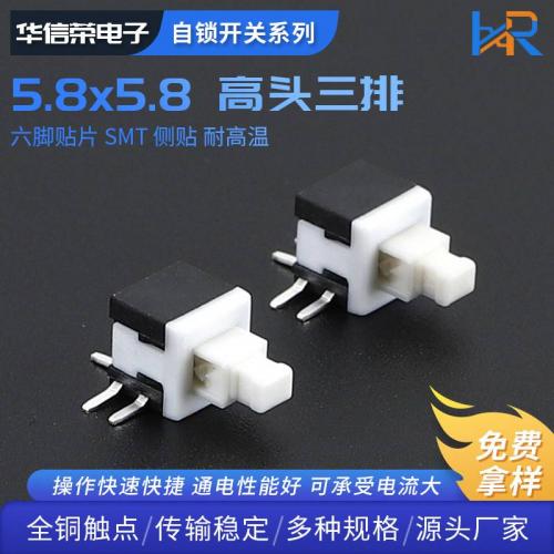 自锁开关 5.8x5.8 高头 三排六脚贴片 SMT侧贴耐高温按键开关
