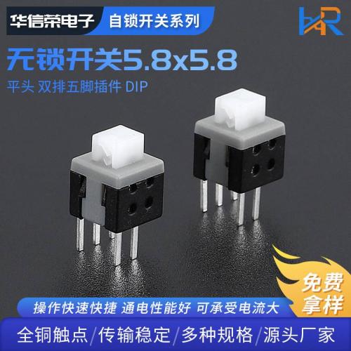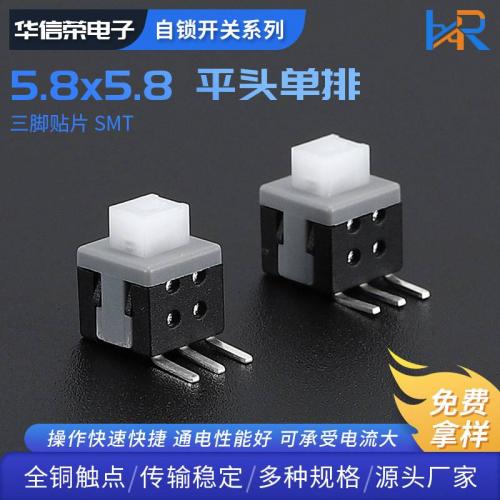 自锁开关5.8x5.8 平头单排三脚贴片SMT卧式按键开关