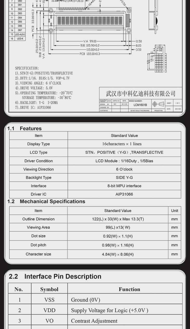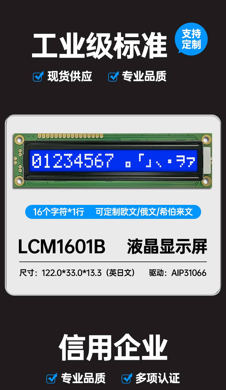 字符点阵LCM1601B液晶屏模块16*1LCD液晶屏JUMBO大字符