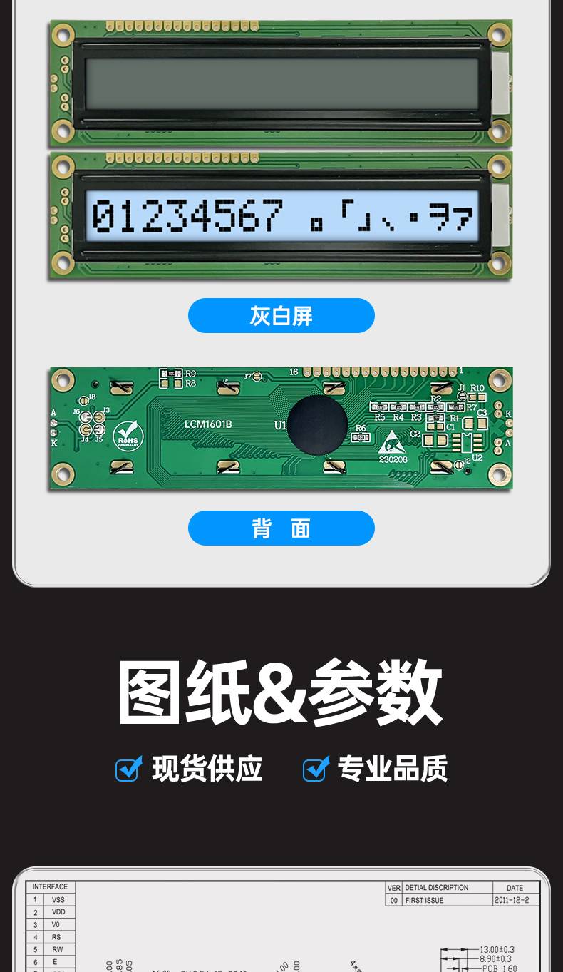 字符点阵LCM1602-11液晶屏模块16*2LCD迷你1602液晶屏