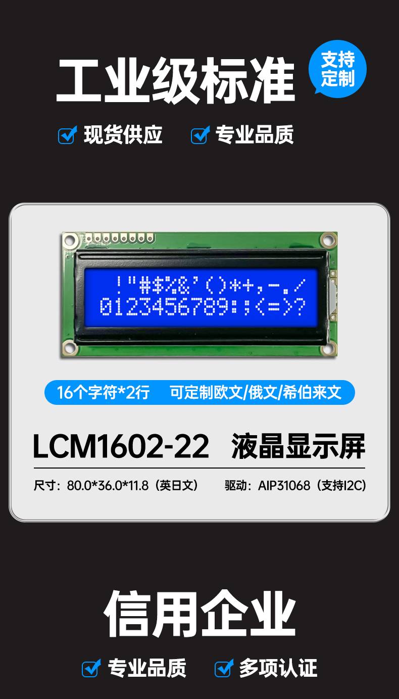 串口液晶屏LCM1602-22 液晶显示模组LCD1602 SPI/IIC接口