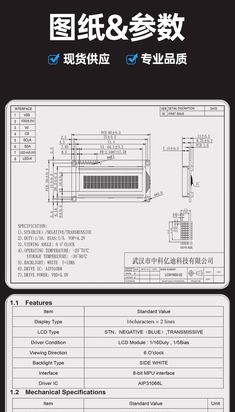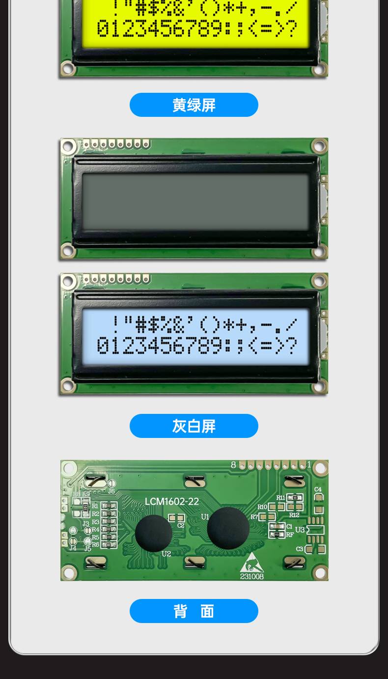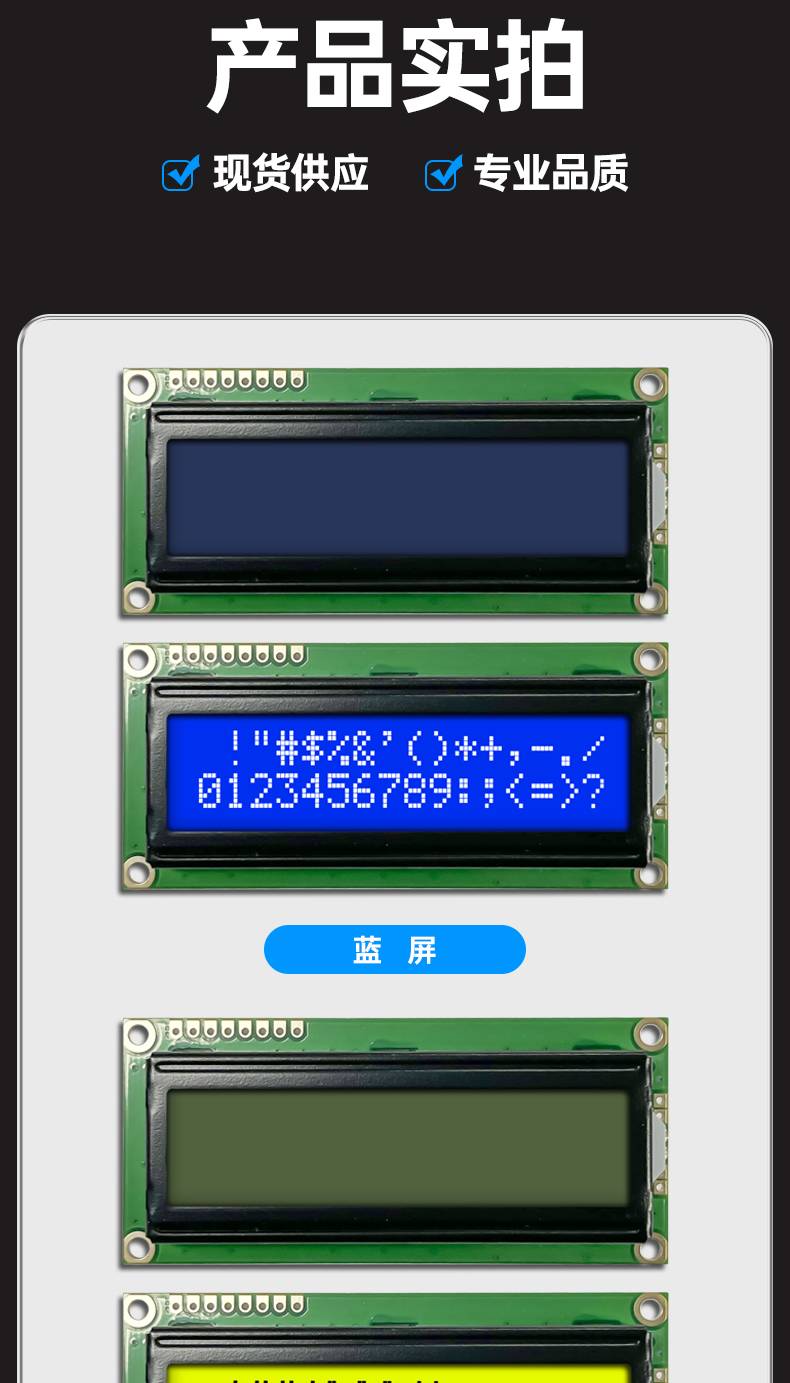LCD1602E液晶屏LCM1602E液晶显示模块16X2行黄绿屏蓝屏带背光5V