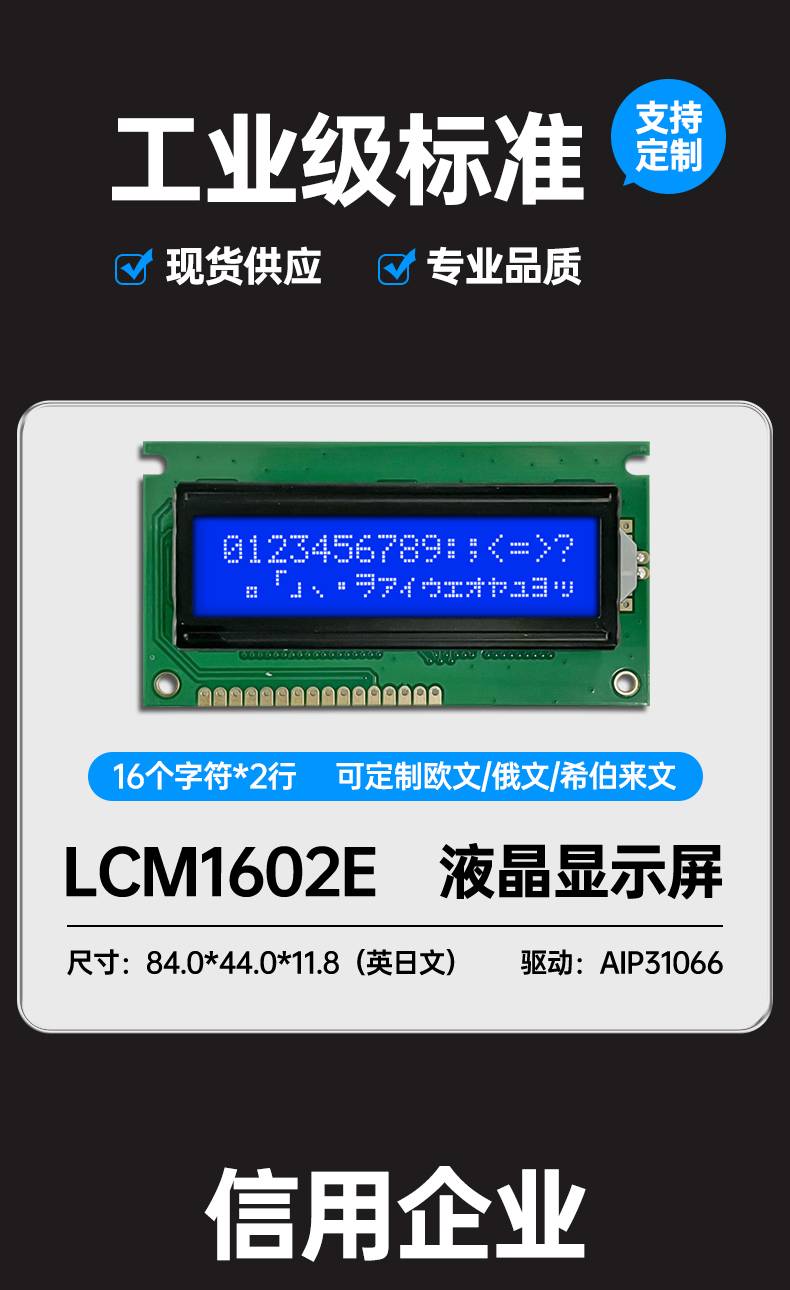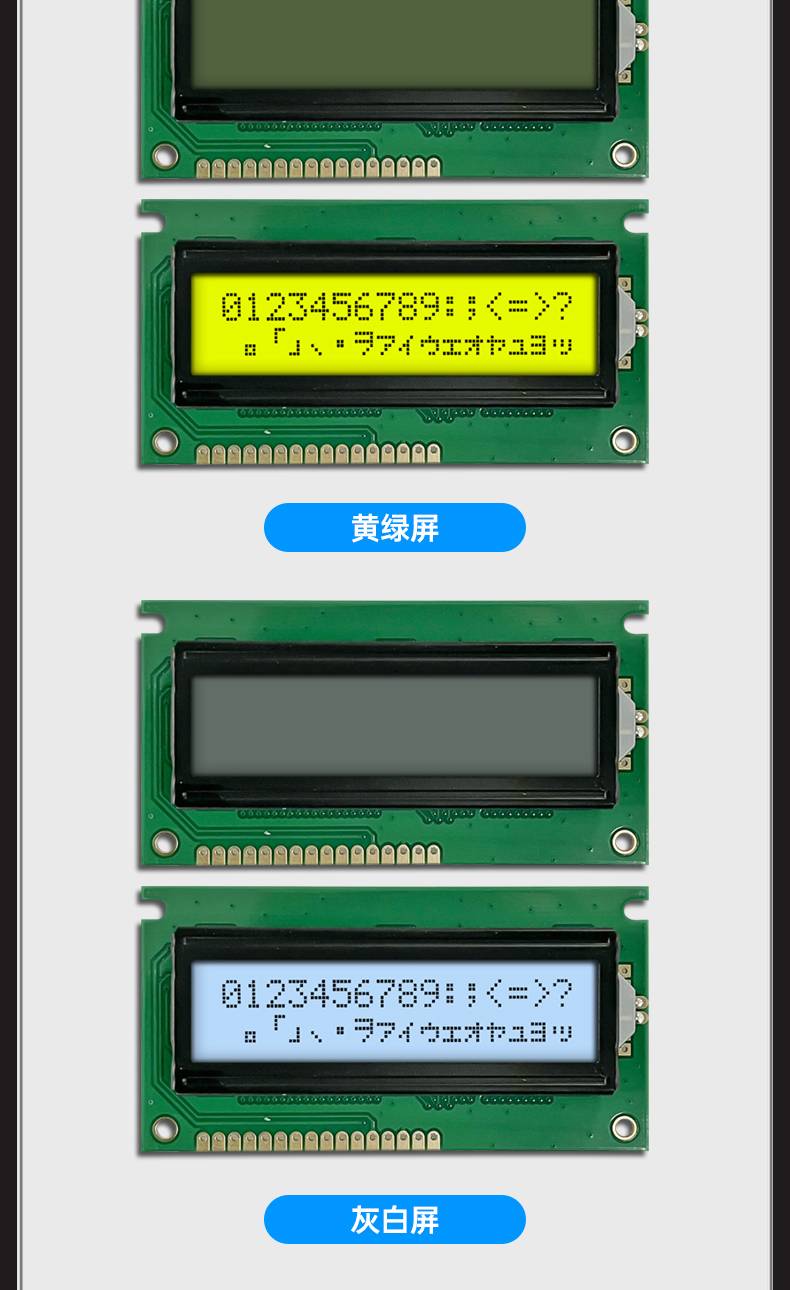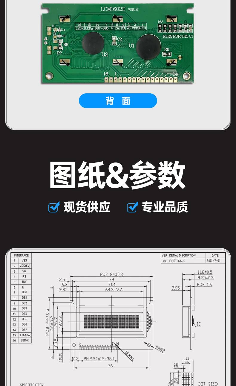 LCD1602E液晶屏LCM1602E液晶显示模块16X2行黄绿屏蓝屏带背光5V