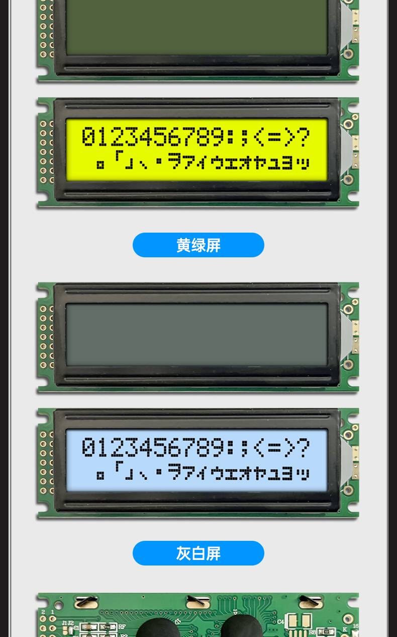 字符点阵LCM1602H液晶显示屏模块16*2行字符蓝屏黄绿屏灰屏3.3V5V