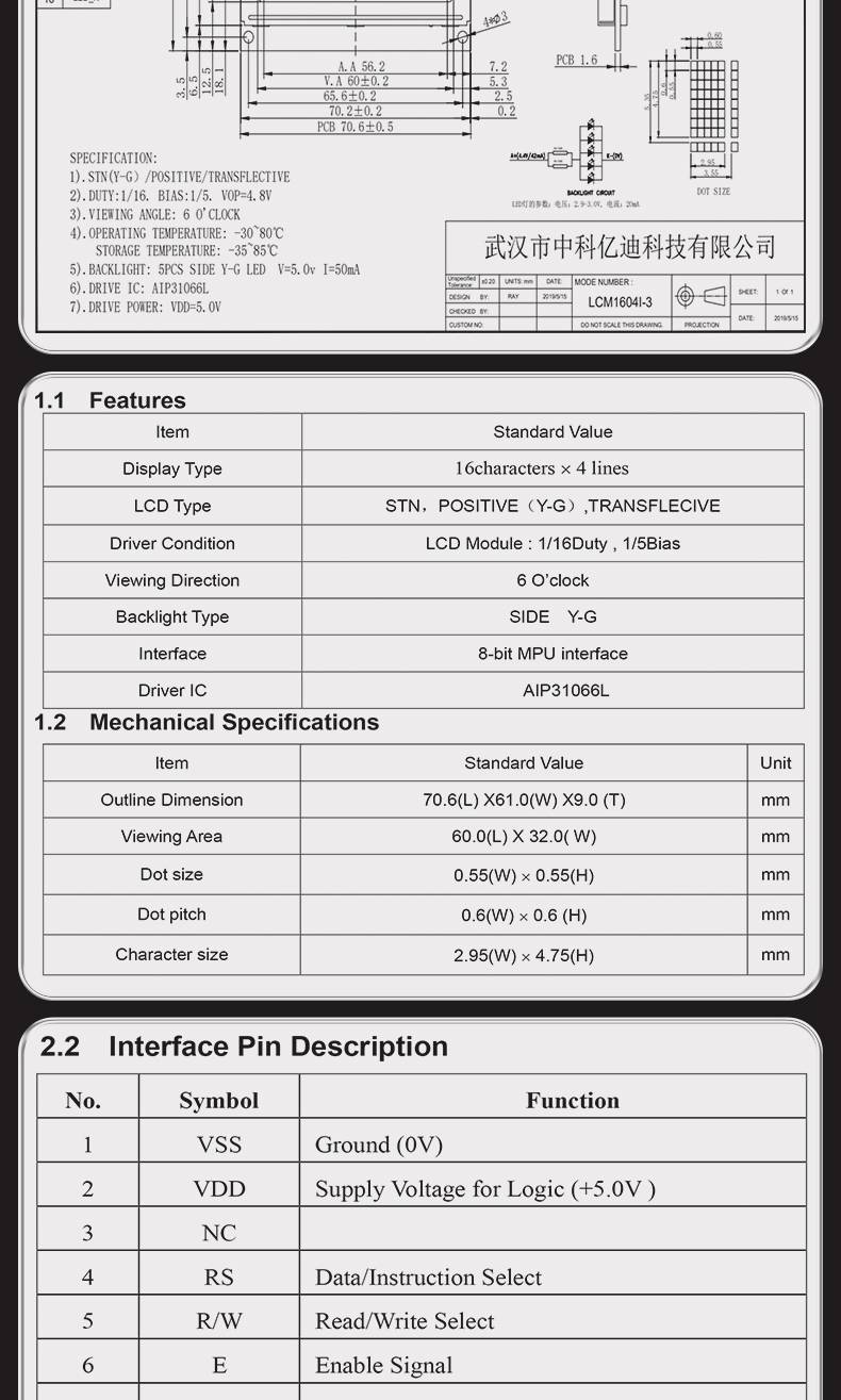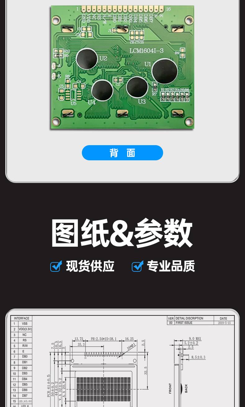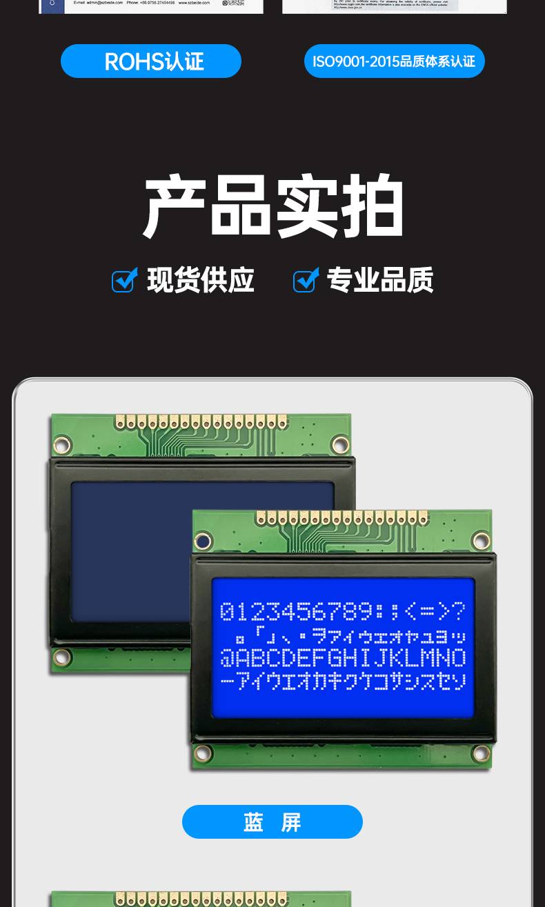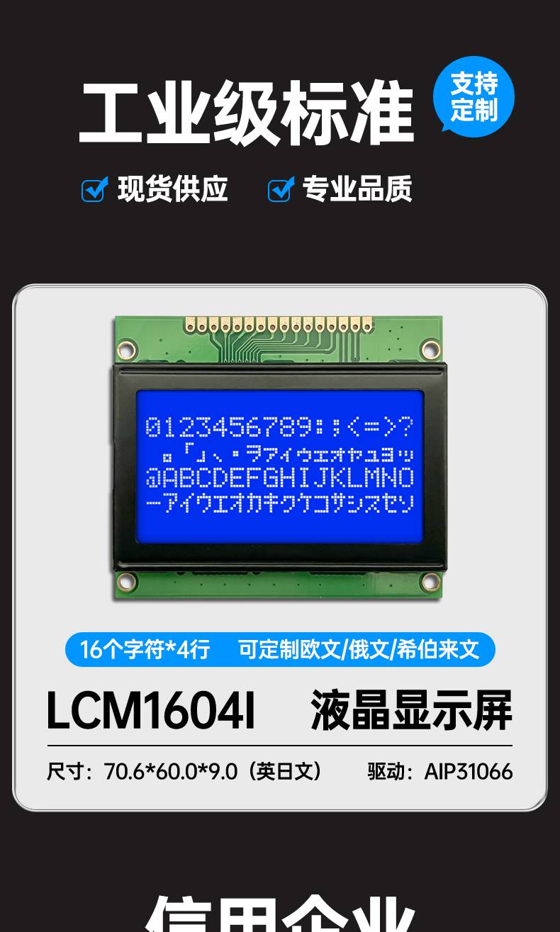 字符点阵LCM1604I液晶屏模块 16个字符*4行 蓝屏 黄绿屏 灰屏
