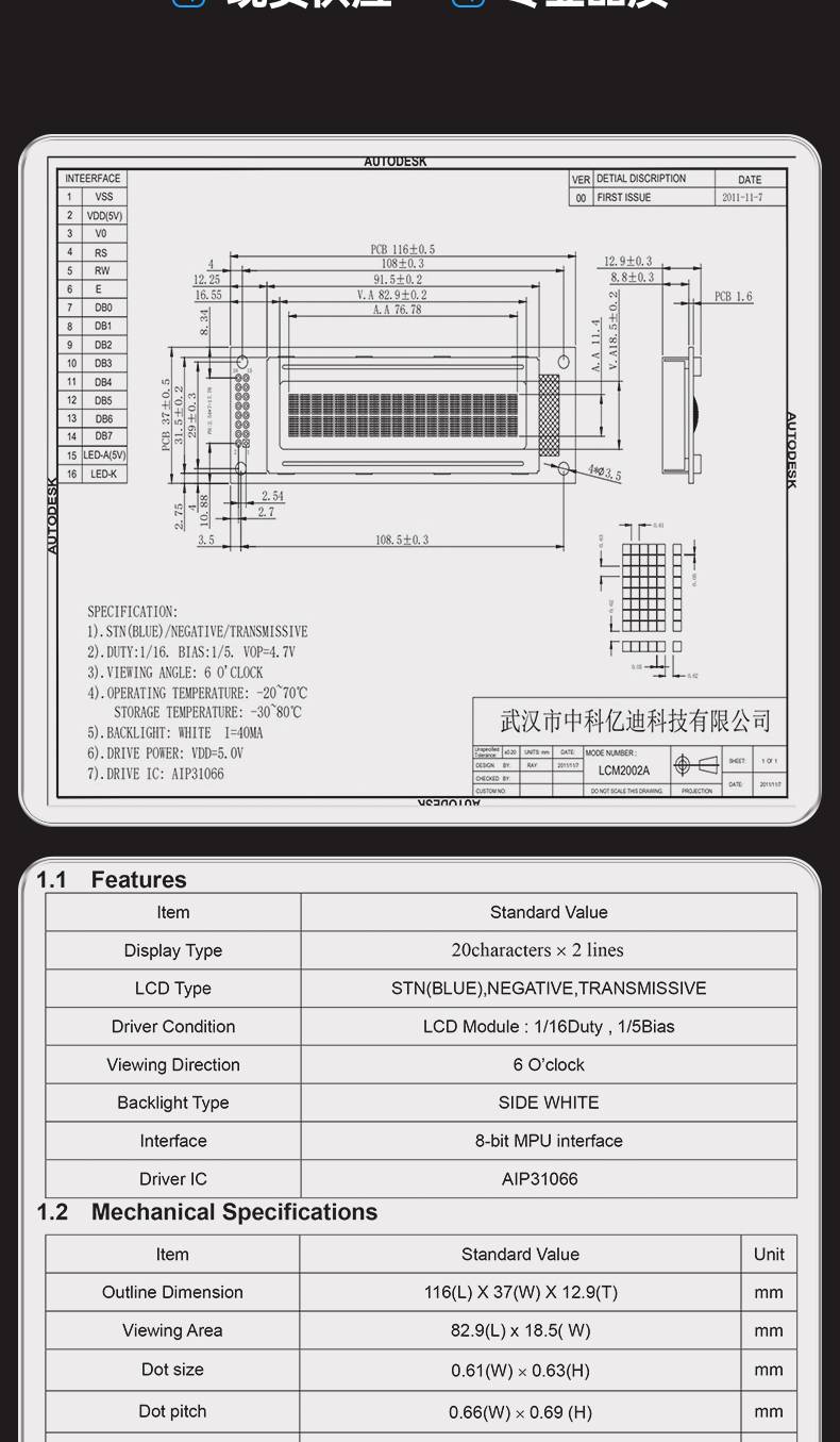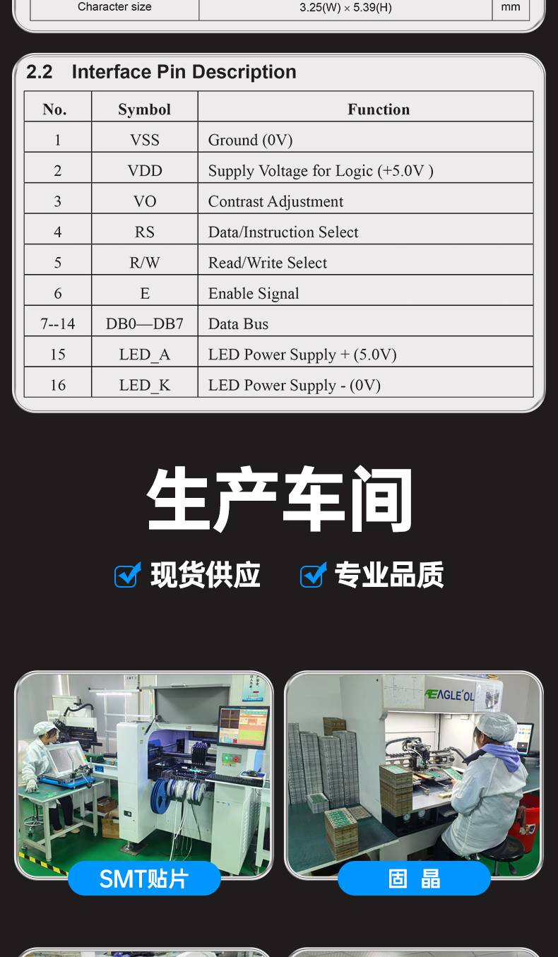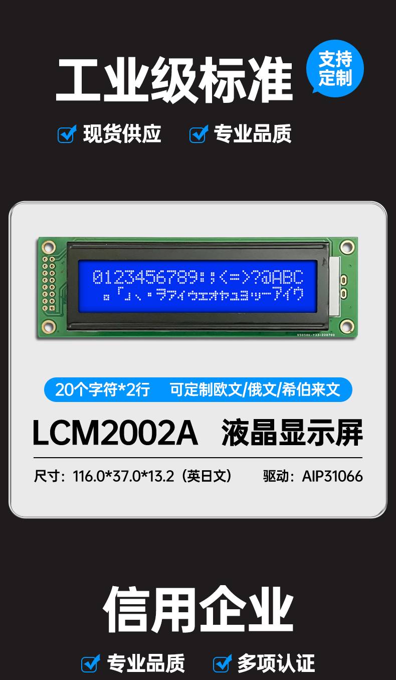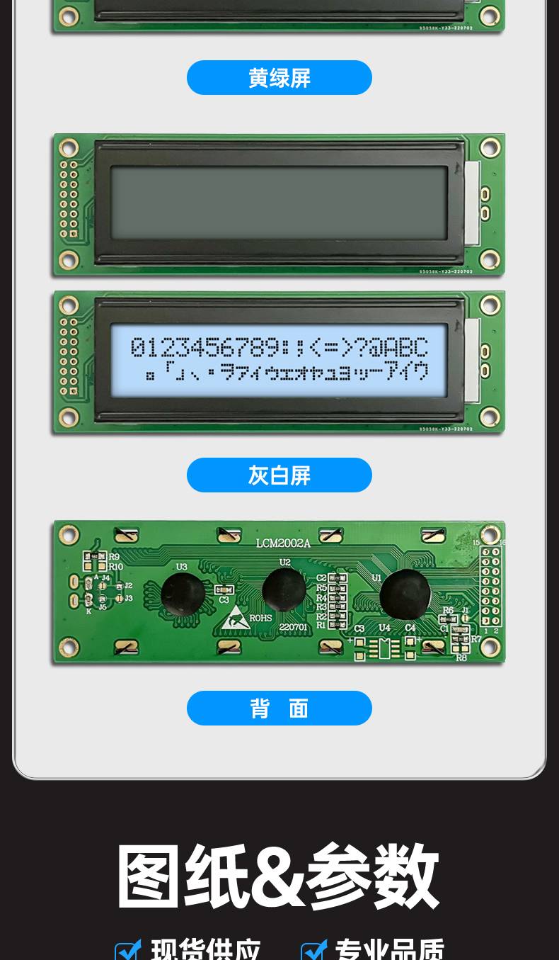 字符点阵LCM2002A液晶屏20*2液晶模块LCM模组蓝屏黄绿屏灰屏工厂