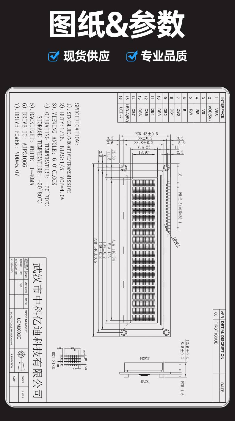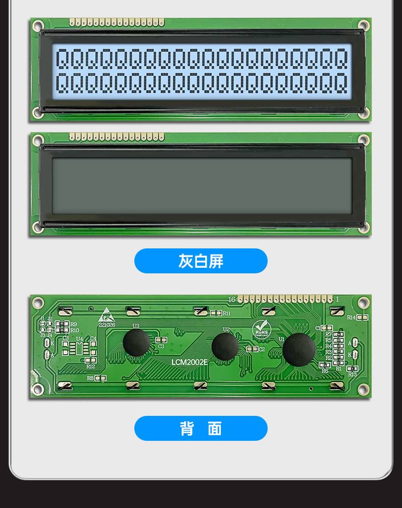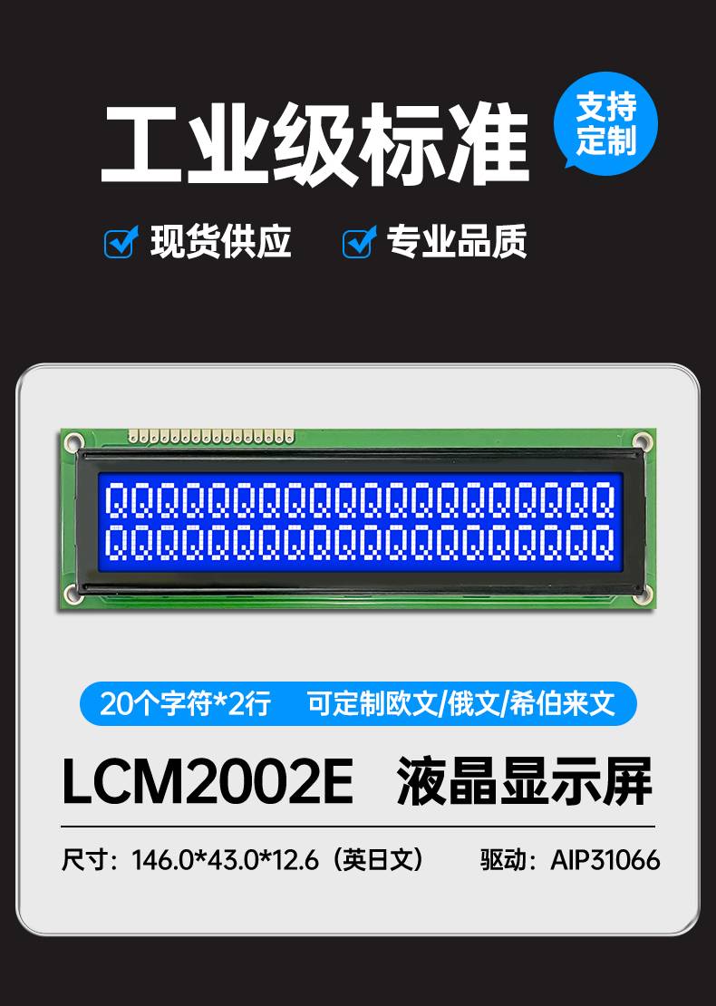 LCM2002E液晶屏显示模组20*2行大字符显示LCD2002显示屏AIP31066