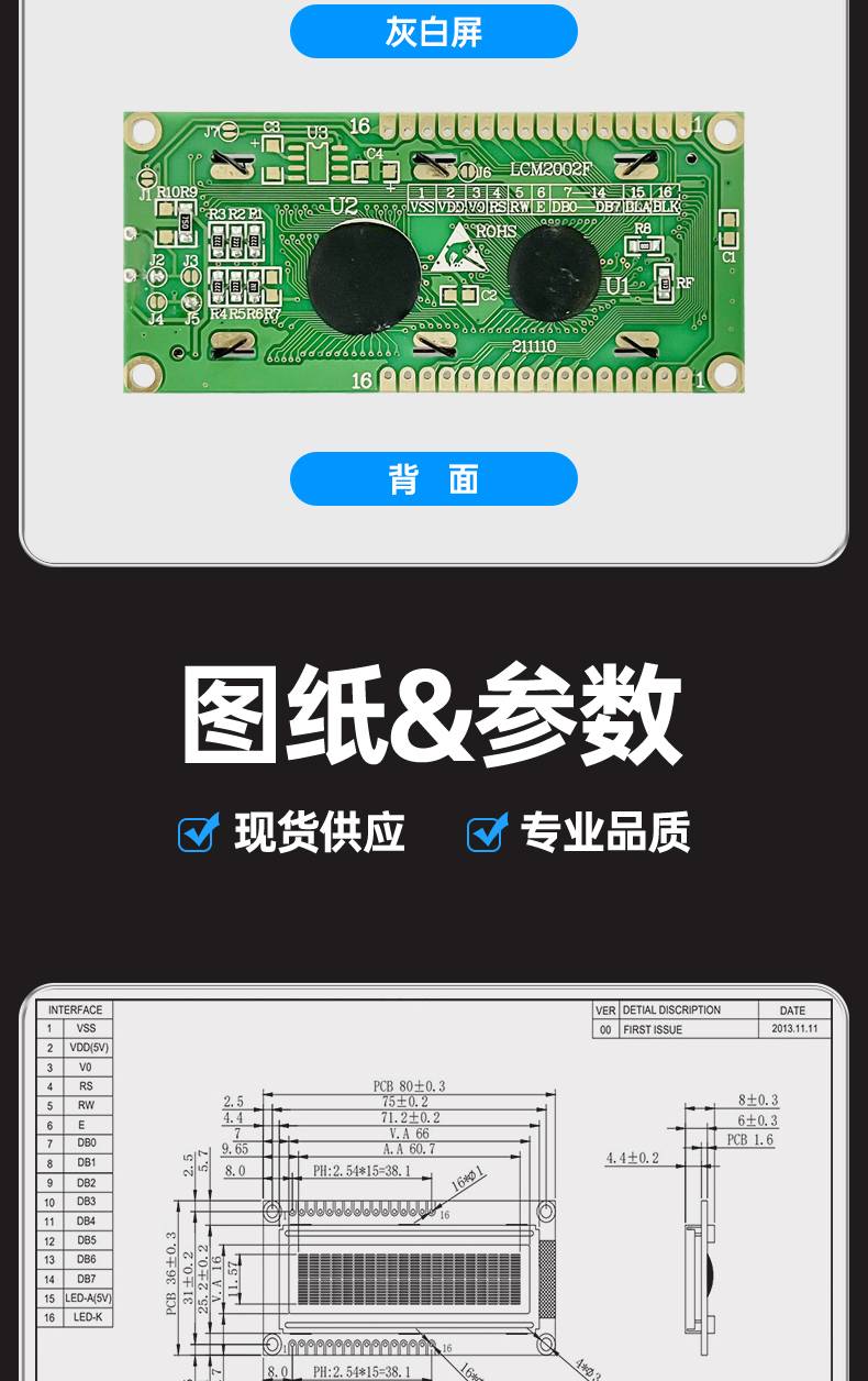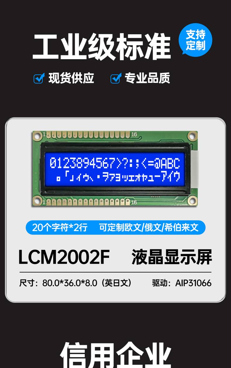 字符点阵LCM2002F液晶屏模块20*2点阵LCD液晶屏1602相同尺寸