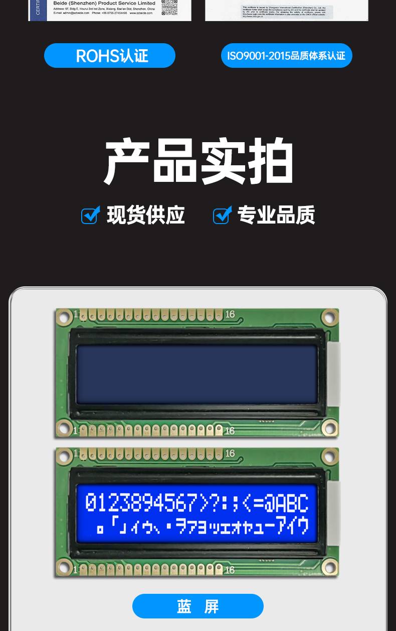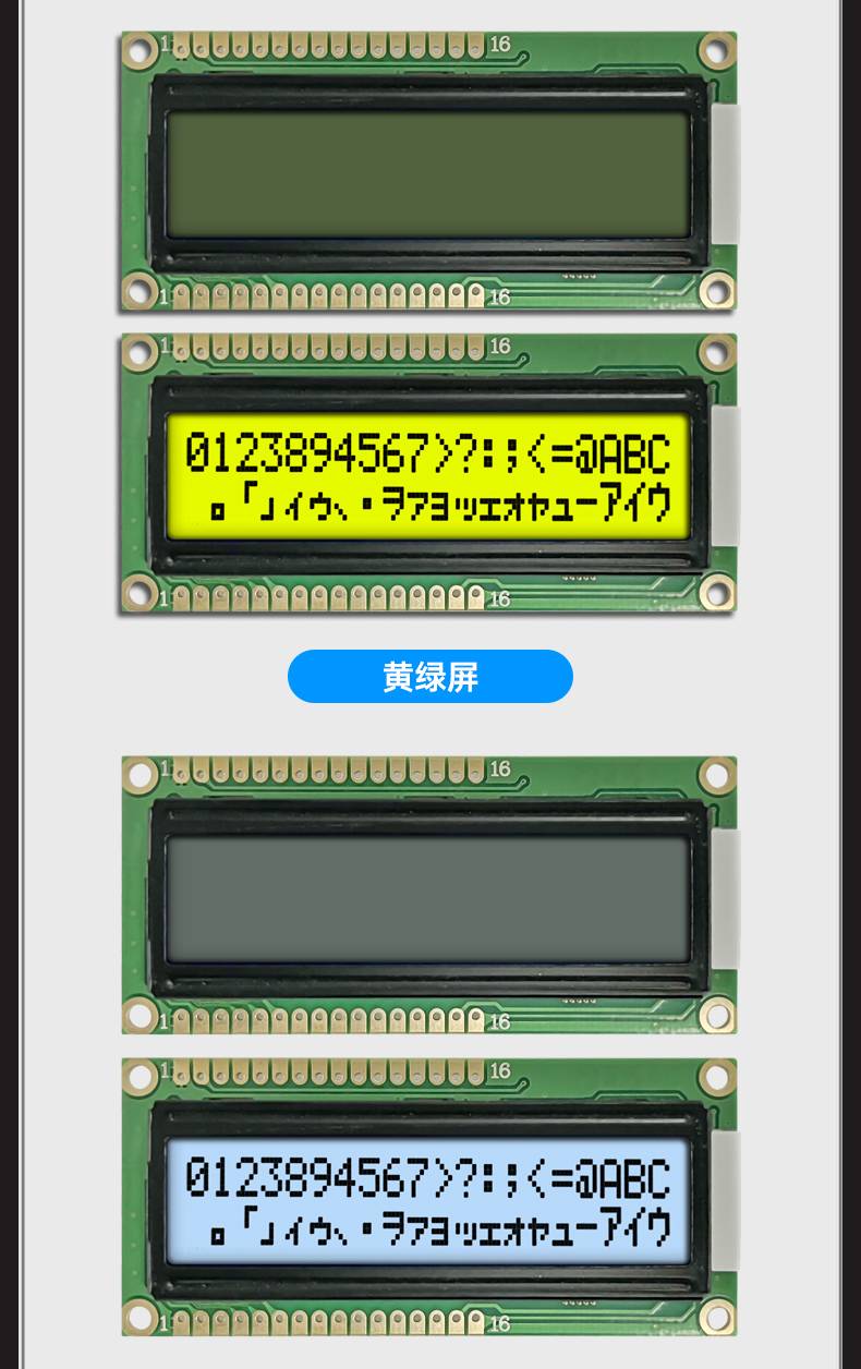 LCD1602E液晶屏LCM1602E液晶显示模块16X2行黄绿屏蓝屏带背光5V
