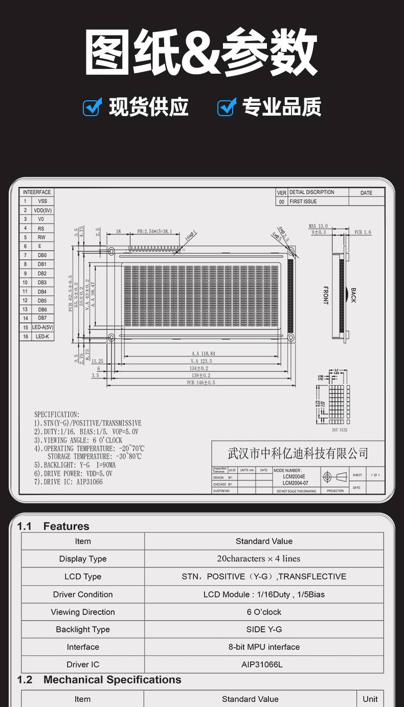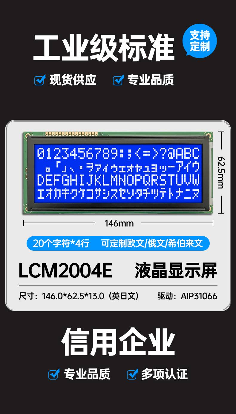 字符点阵LCM2004E液晶屏模块 20*4LCD液晶屏 大字符JUMBO工厂供应
