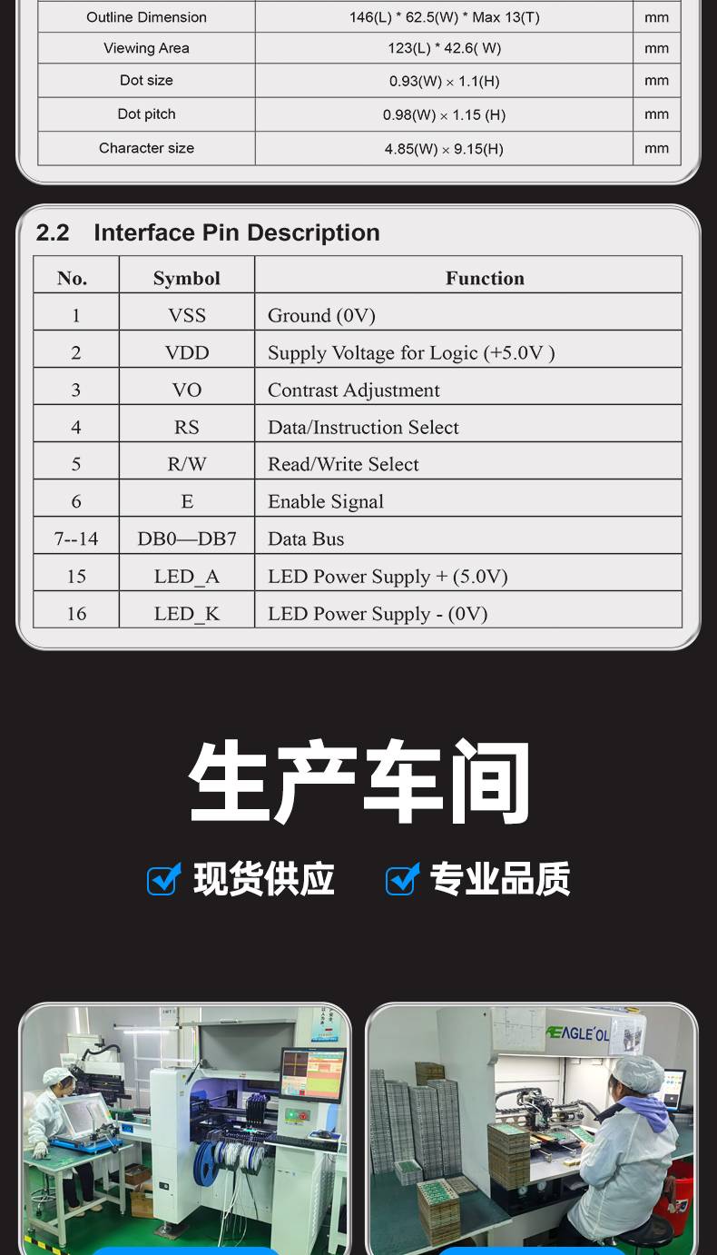 字符点阵LCM2002A液晶屏20*2液晶模块LCM模组蓝屏黄绿屏灰屏工厂