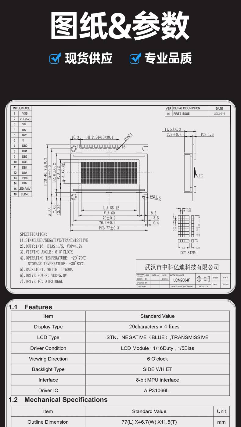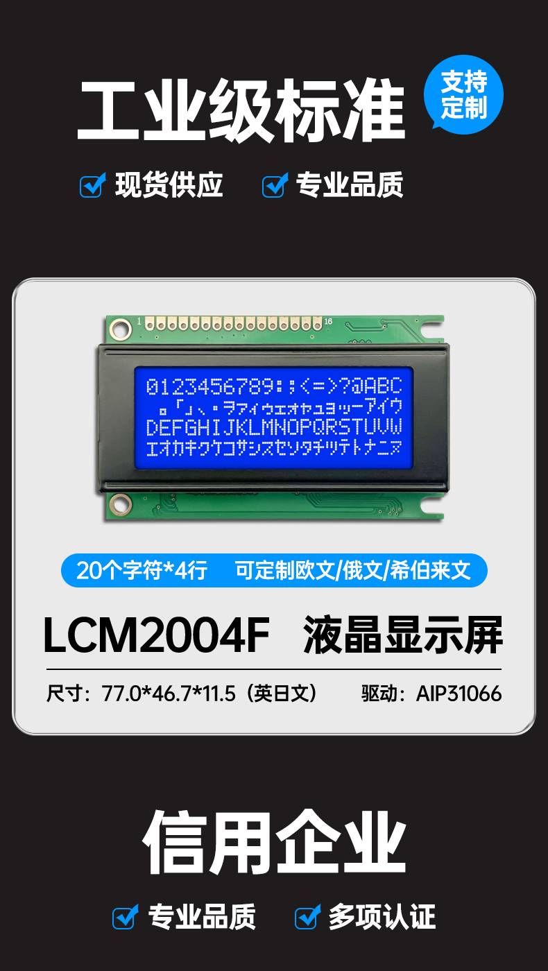 字符点阵LCM2004F液晶屏模块20个字符*4行蓝屏黄绿屏灰屏现货供应