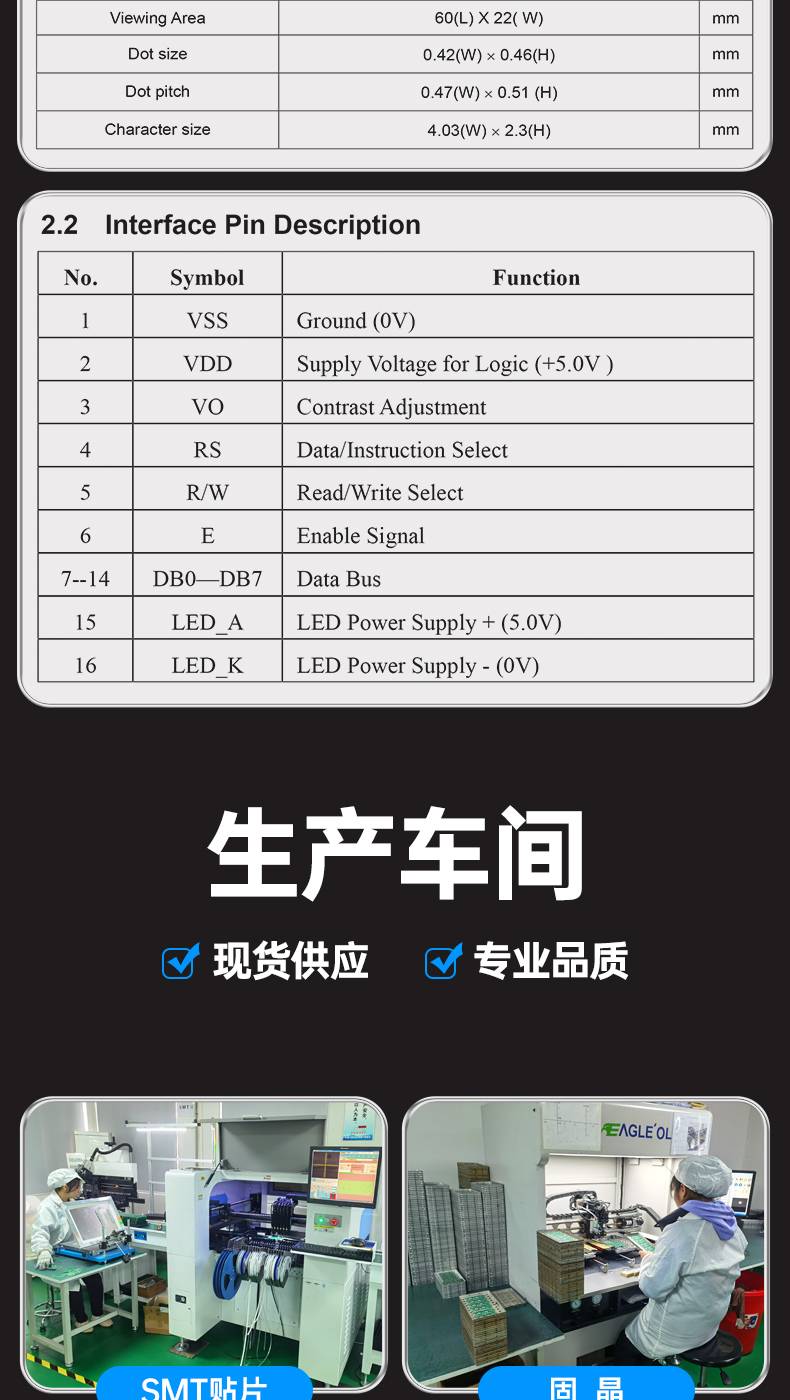 字符点阵LCM1601A液晶模块16个字符*1行点阵屏工厂供应