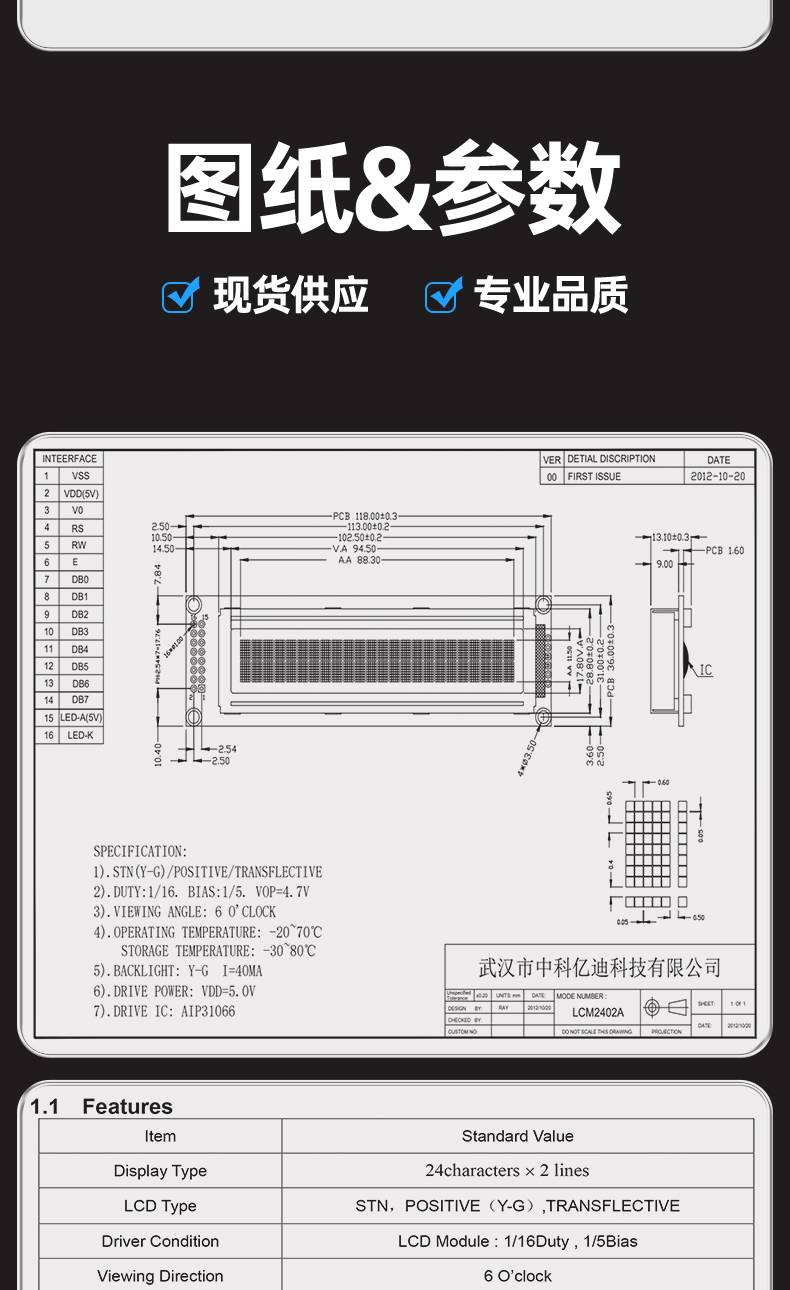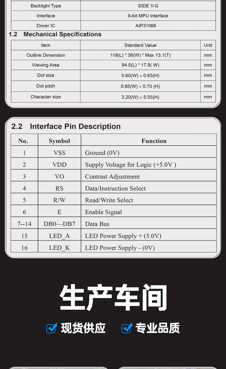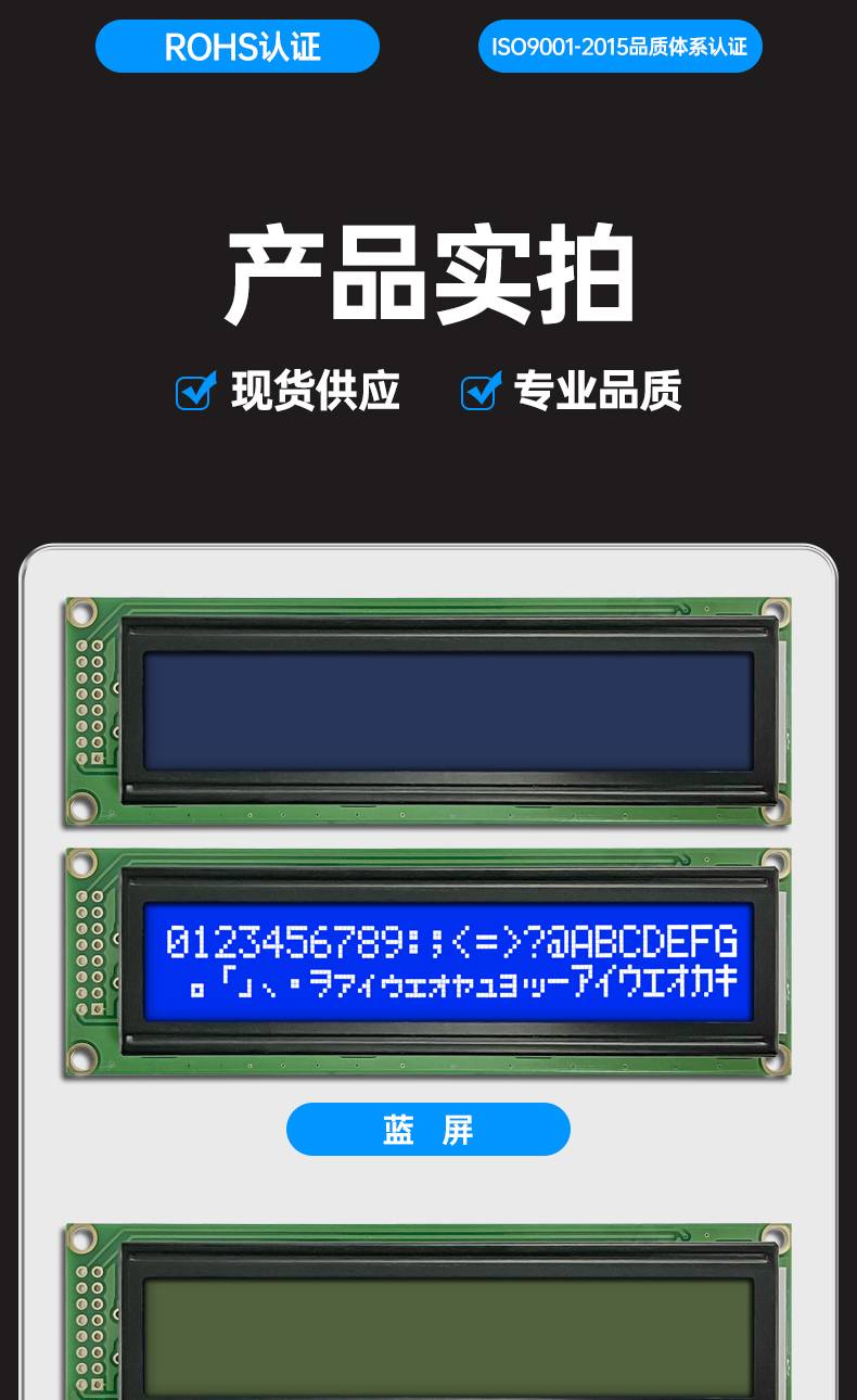 字符点阵LCM1202-01液晶屏模块12个字符*2行蓝屏黄绿屏灰屏3.3V5V