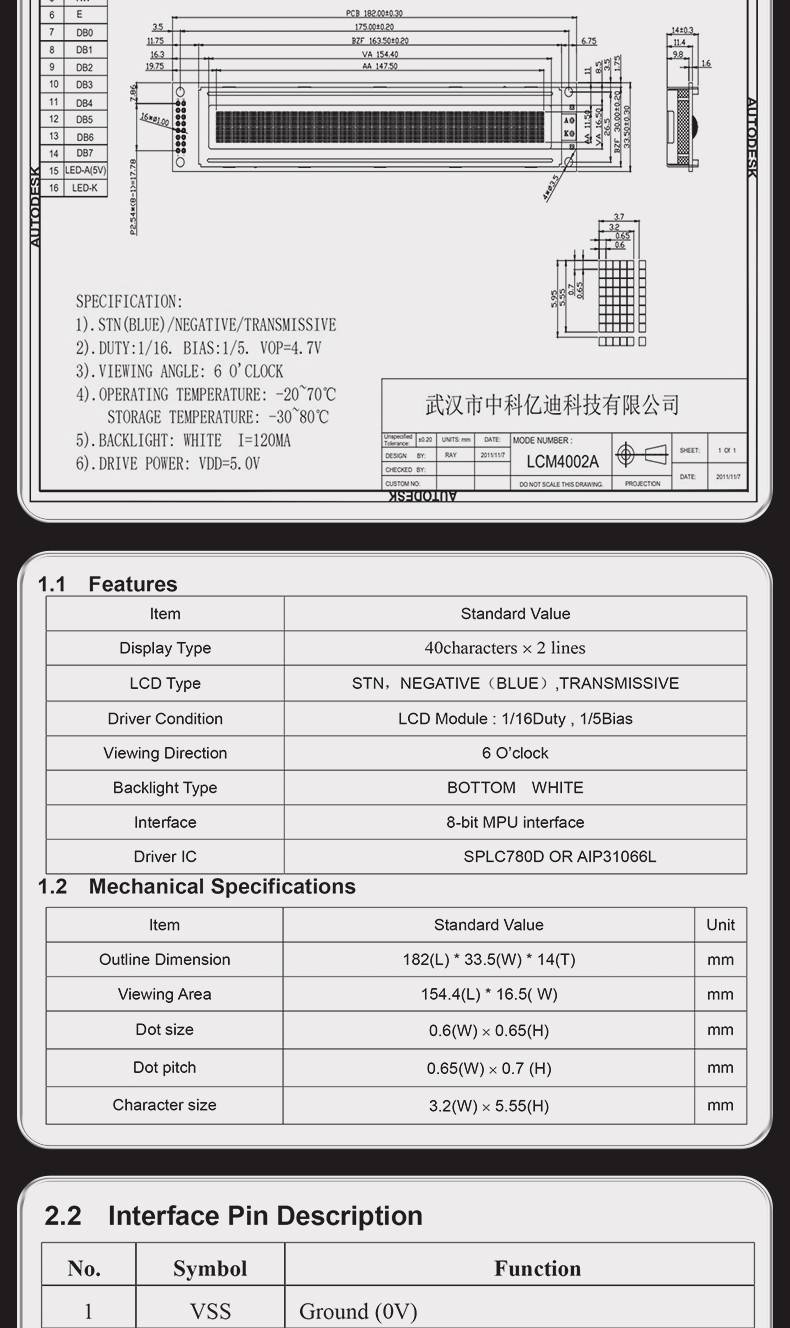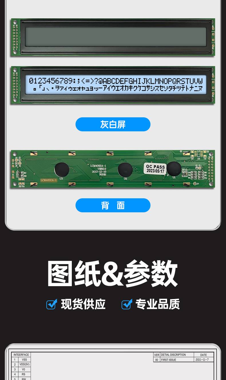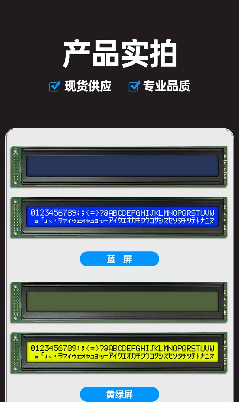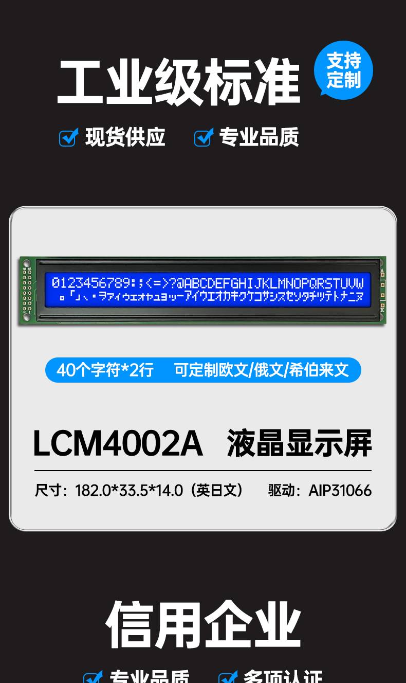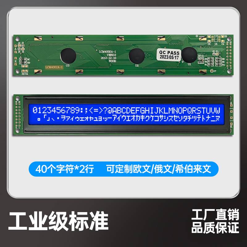 字符点阵LCM4002A液晶显示模块40个字符*2行显示屏黄绿蓝屏3.3V5V