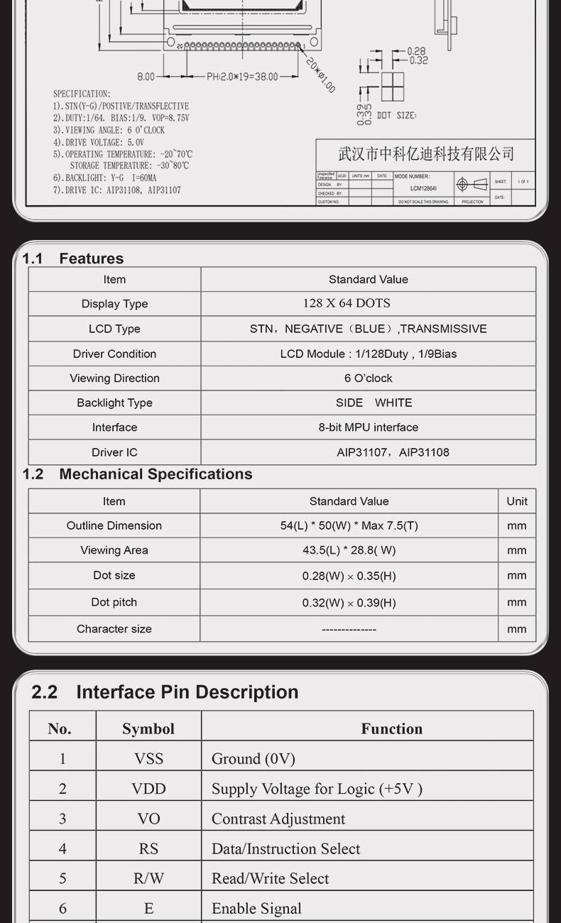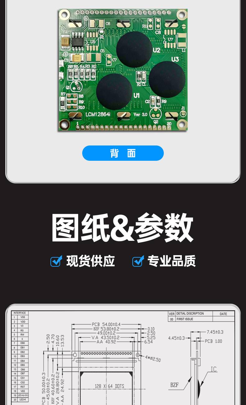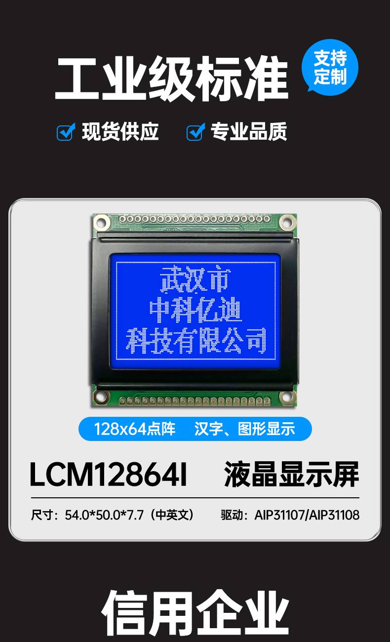 图形点阵LCM12864I液晶显示屏模块128*64点阵小屏LCD汉字图形模组