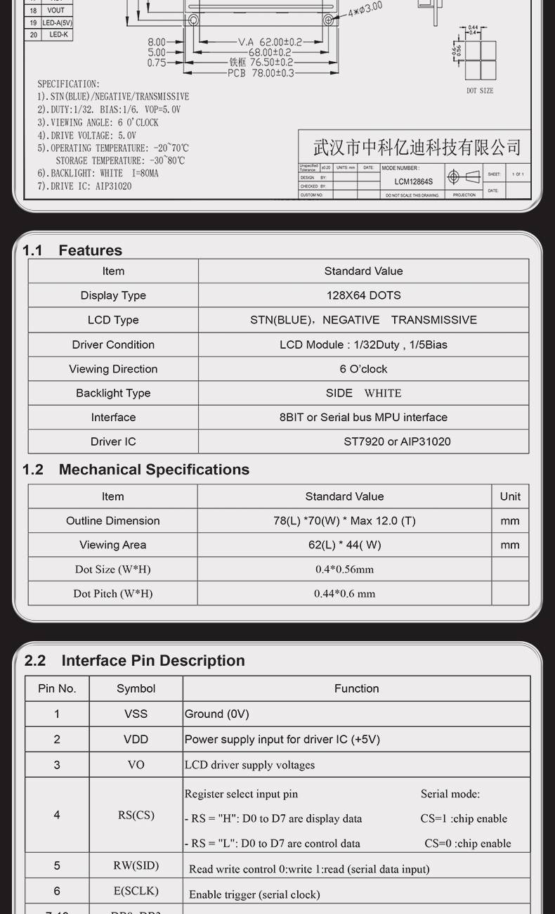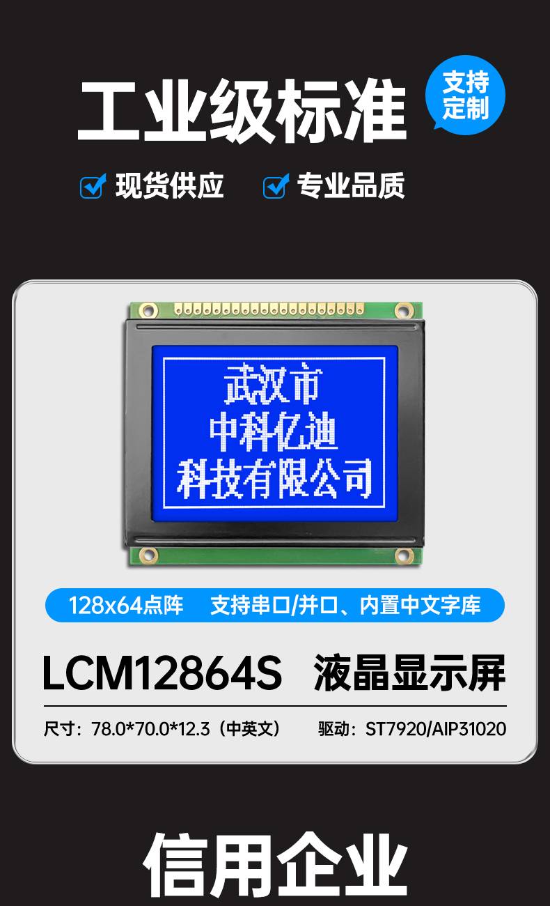 COG12864C-011B液晶屏显示模块ST7567驱动灰屏蓝屏智能照明时控屏