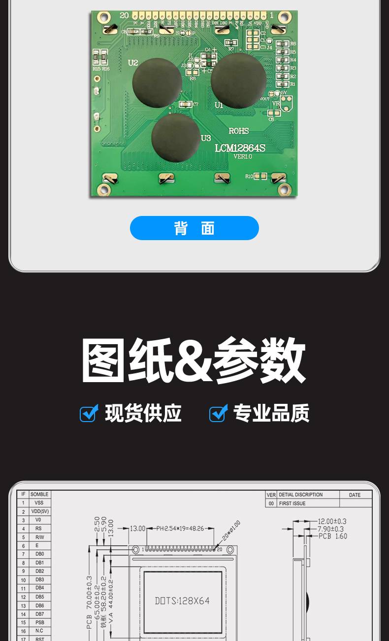 图形点阵LCM12864S液晶屏模块128*64点阵蓝屏黄绿屏灰屏内置字库