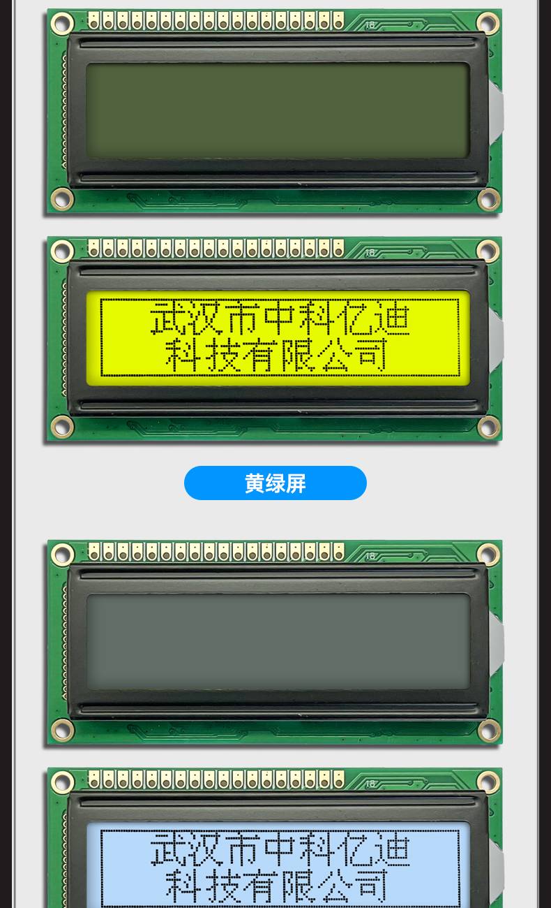 字符点阵LCM1602F液晶屏模块16个字符*2行LCD显示蓝屏黄绿屏灰屏